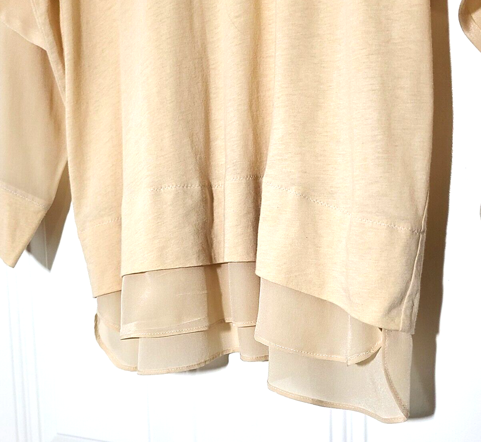 Sundance Top Womens Size M Silk Cotton Semi Sheer 3/4 Sleeves Beige Keyhole Back
