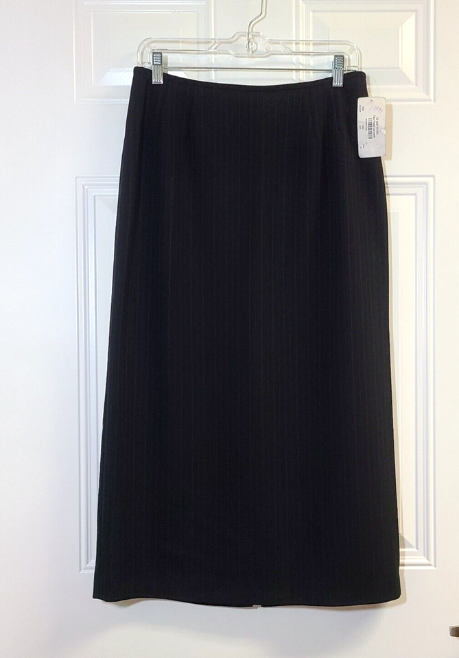 Le Suit Skirt Vintage Size 10P Black Pink Column Long Pinstripe Lined Career NWT