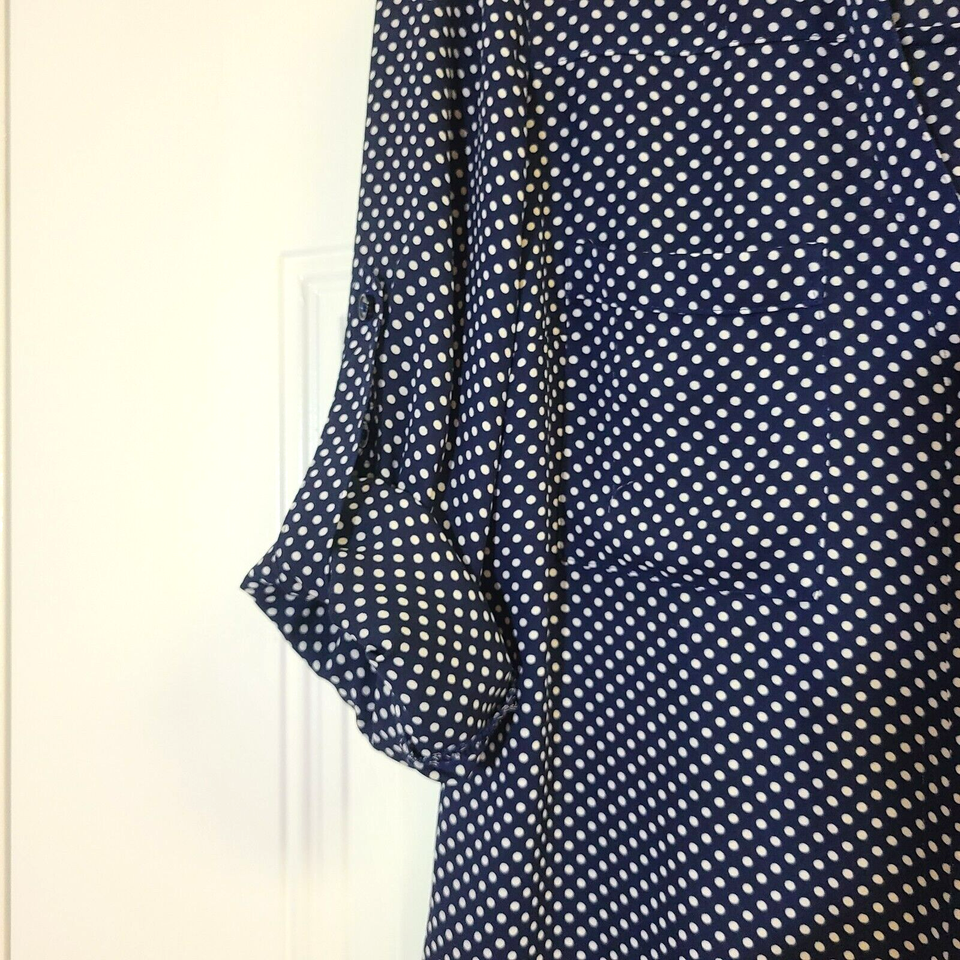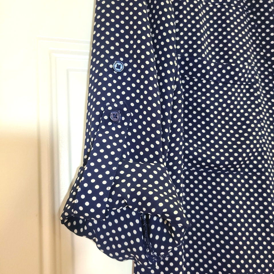 Express Portofino Shirt Blouse Size SP Navy White Pockets Long Roll Tab Sleeves