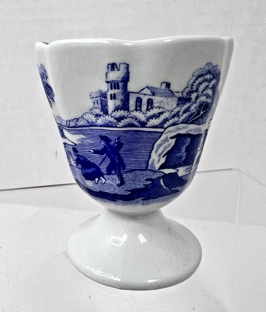 Vintage Spode Blue Scalloped Copeland Tower England Egg Cup 2.5"