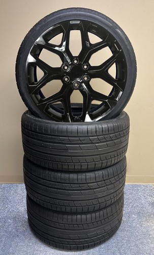 New Set Of Four GM Style Replica 24" Gloss Black Snowflake Wheels With New 305/35R24 Tires. Set includes programmed and installed TPMS. Please message us with year model truck after purchase.