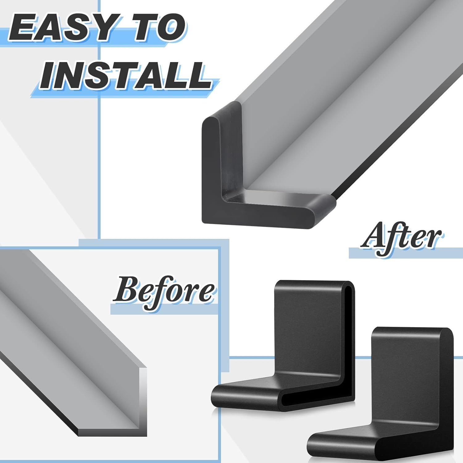 our bed frame corner guards are made of quality rubber material, thick enough to support your steel frame, bed frame, furniture corner cushion or heavy duty shelf, with a clean and beautiful appearance and high durability