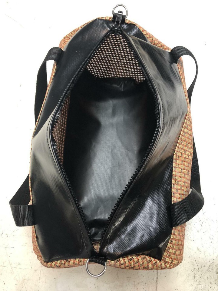 The bag is constructed with Phifertex PVC Mesh fabric with Microban antimicrobial protection and GVC18, a highly functional vinyl-coated polyester tarp fabric which resists rips, tears, abrasions, and punctures.
