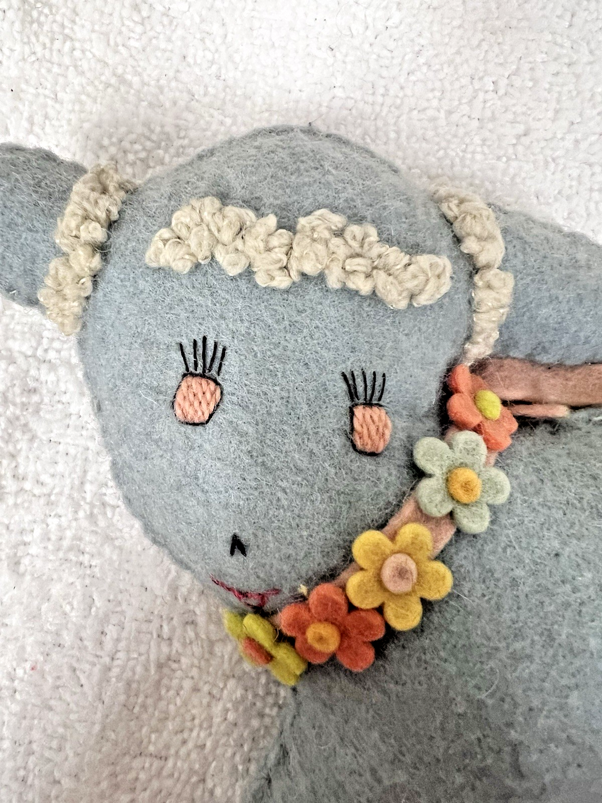 Handmade Blue Felt Lamb Sheep w Flower and 11 similar items