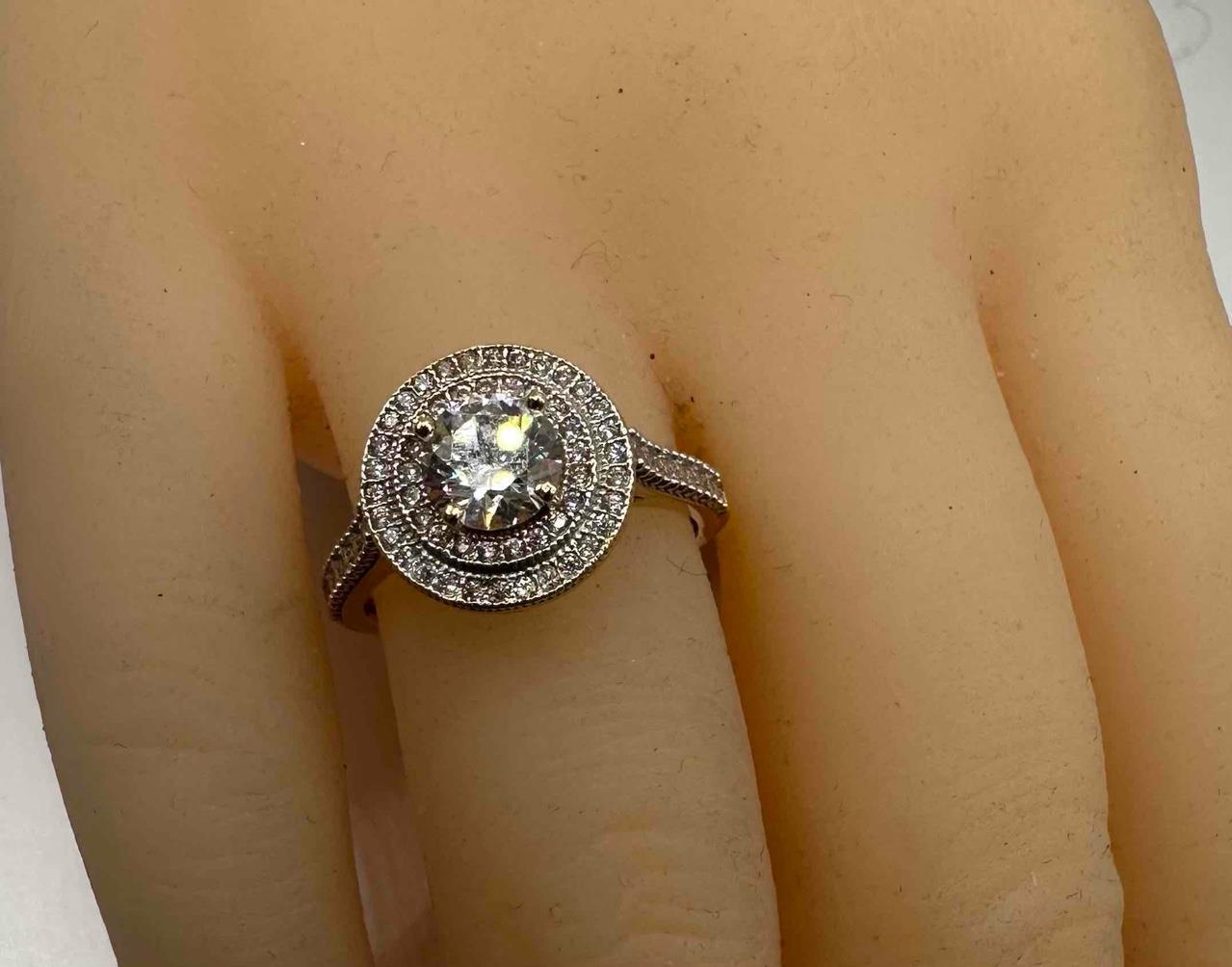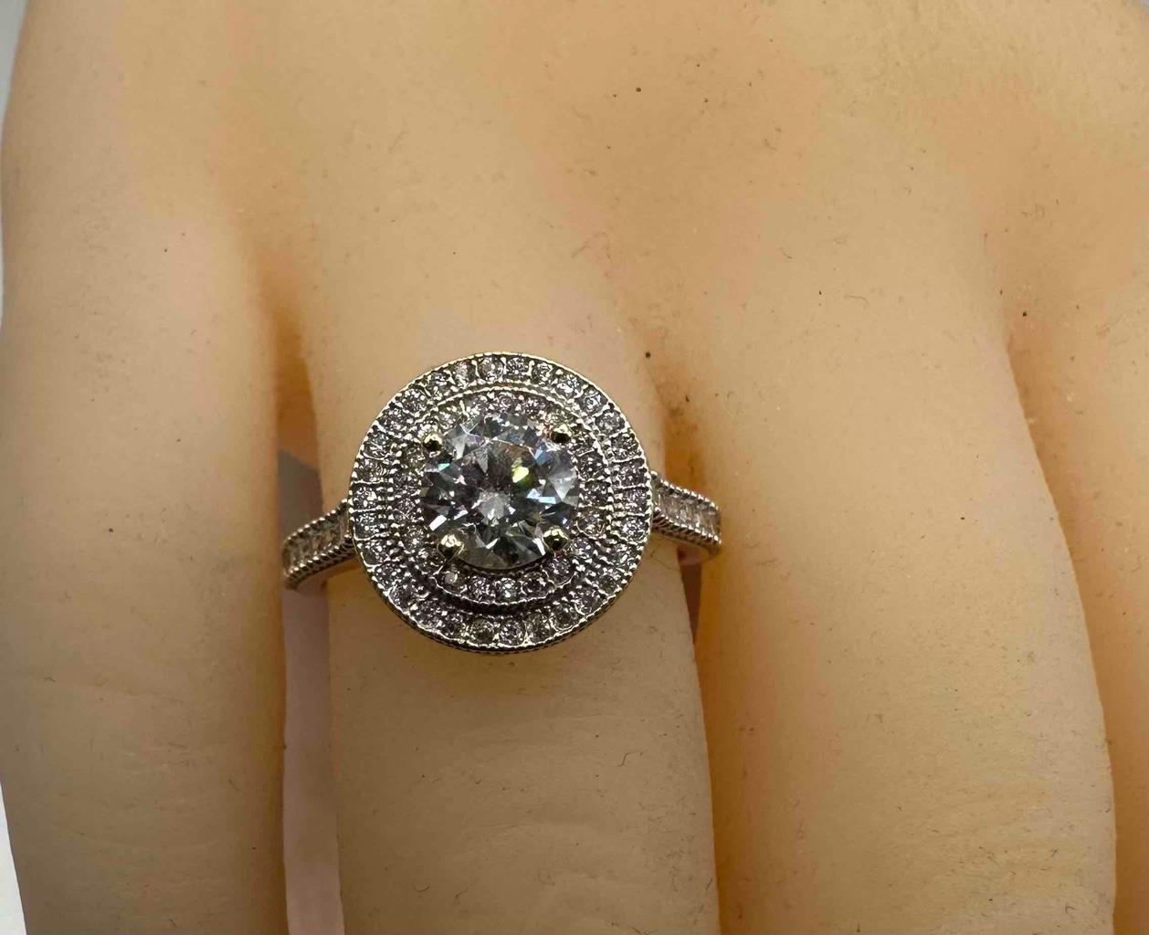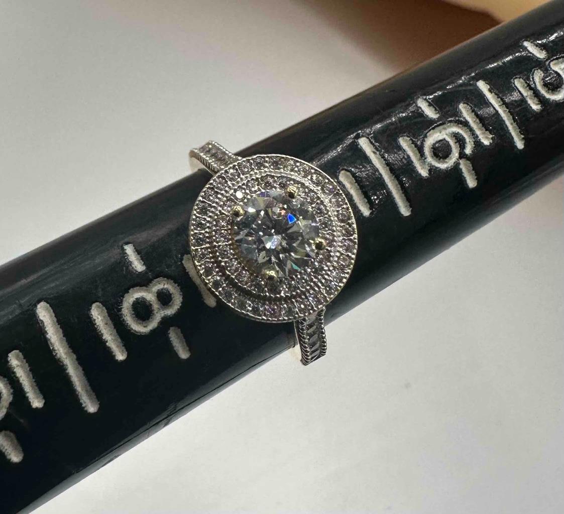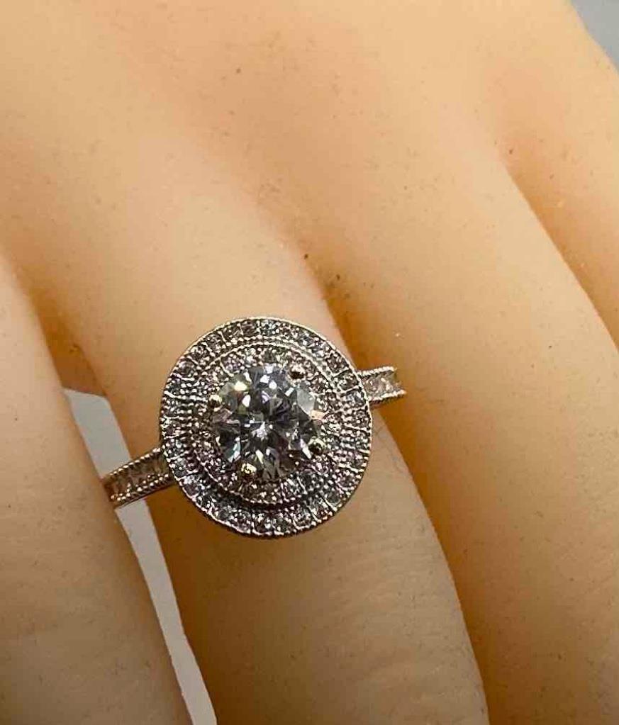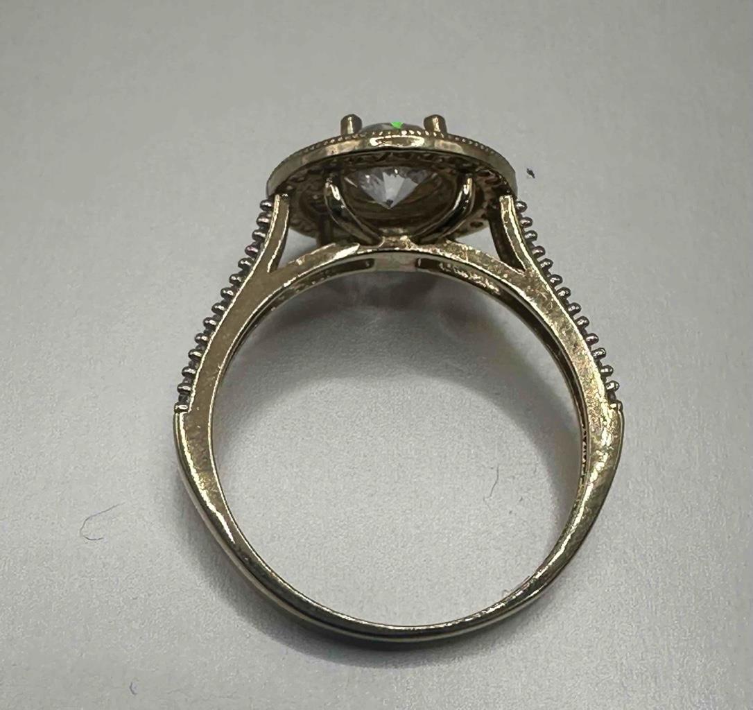 Real Solid 14K Yellow Gold Clear Stones Engagement Style Halo Ring SZ 7 -3 gr-
