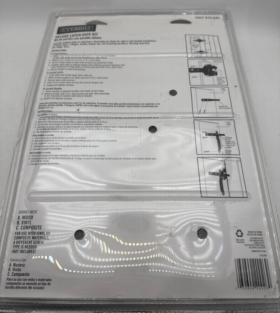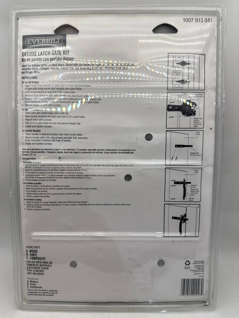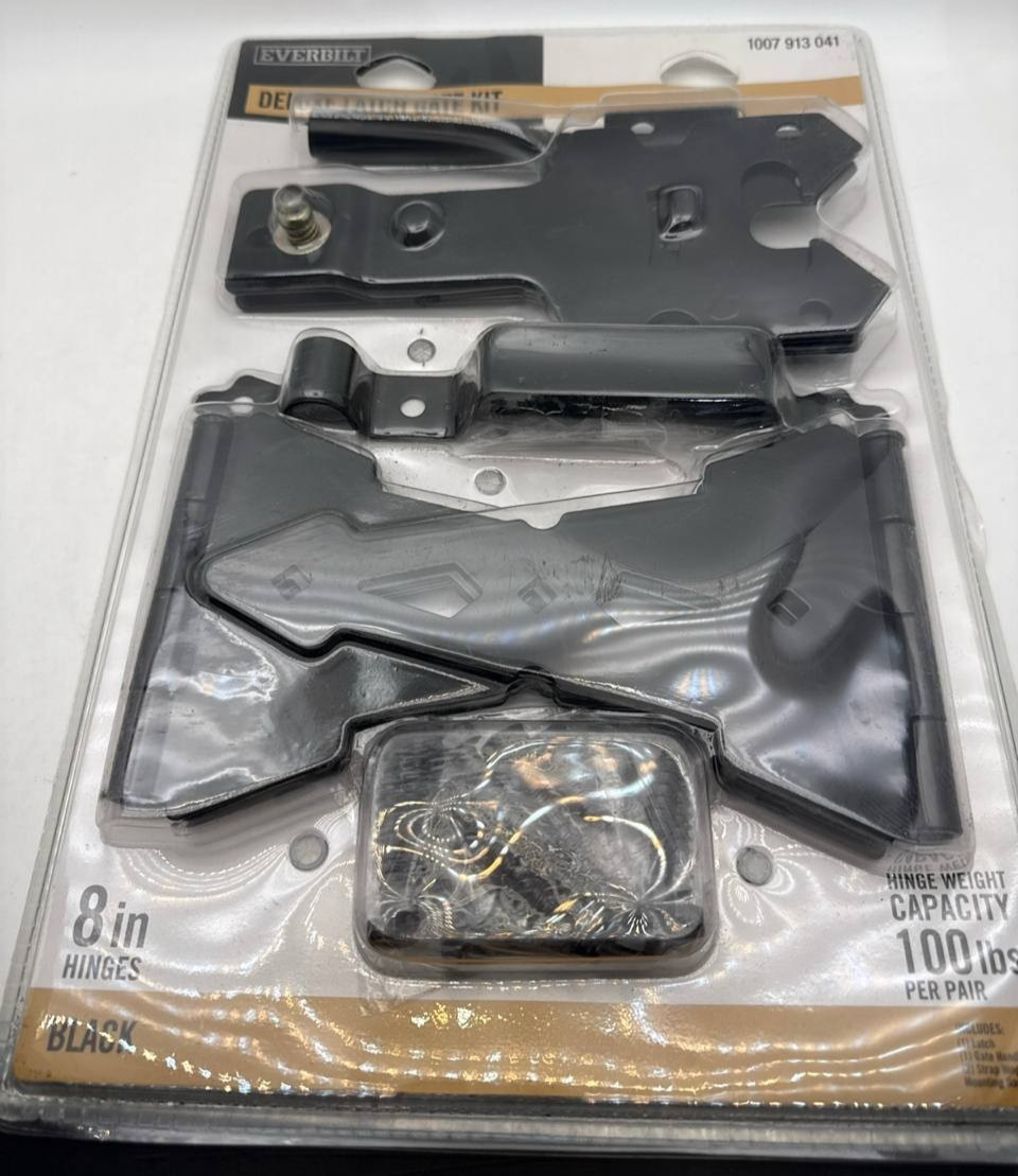 Item includes: Please note: This item includes 1x Everbilt Black Decorative Gate Hinge, 1x Heavy Duty Latch, 1x Gate Handle, Mounting Hardware, and Installation Instructions ? As Pictured. No other accessories are included.
