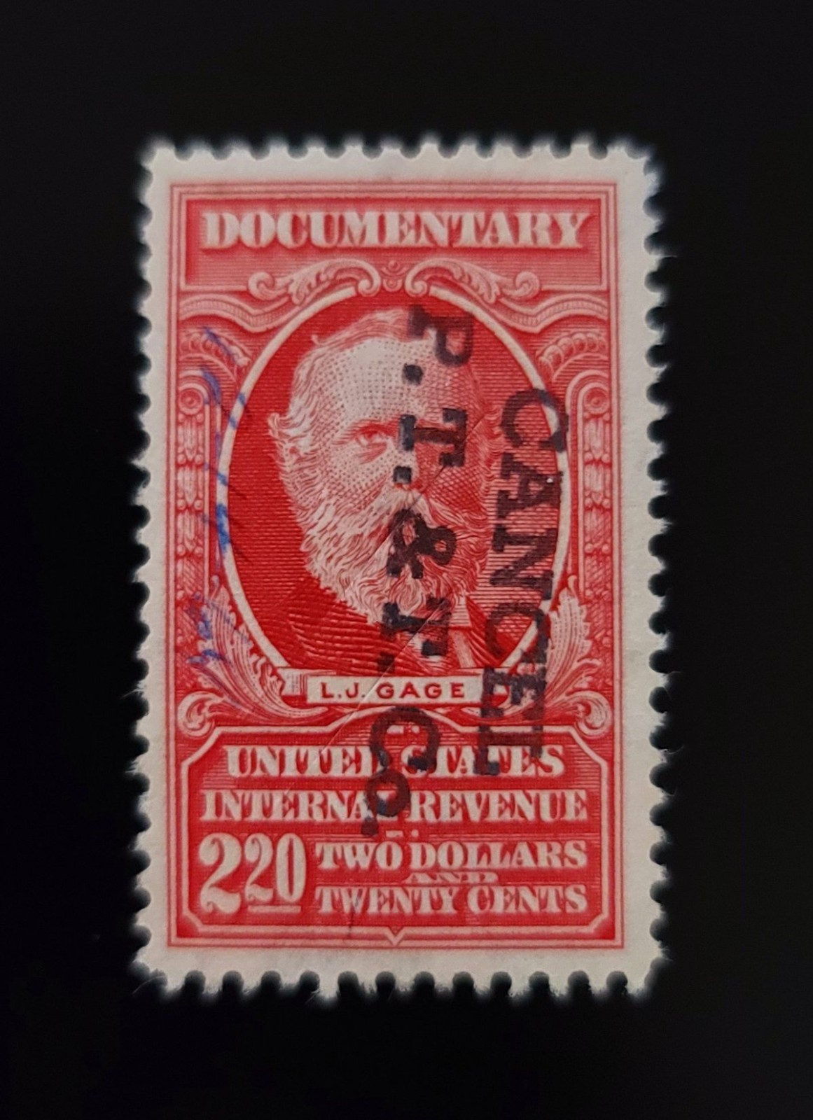 1954 $2.20 U.S. Internal Revenue, Documentary, L. J. Gage, Carmine, R671