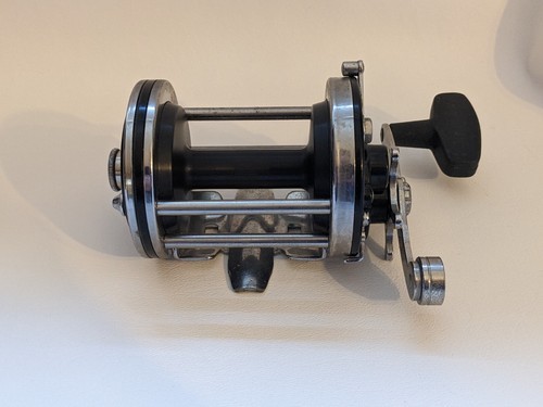 A vendre est un PENN SQUIDDER DUSSIGNEMENT Utilise 140 avec des plaques laterales noires lisses USA Fishing Reel Working