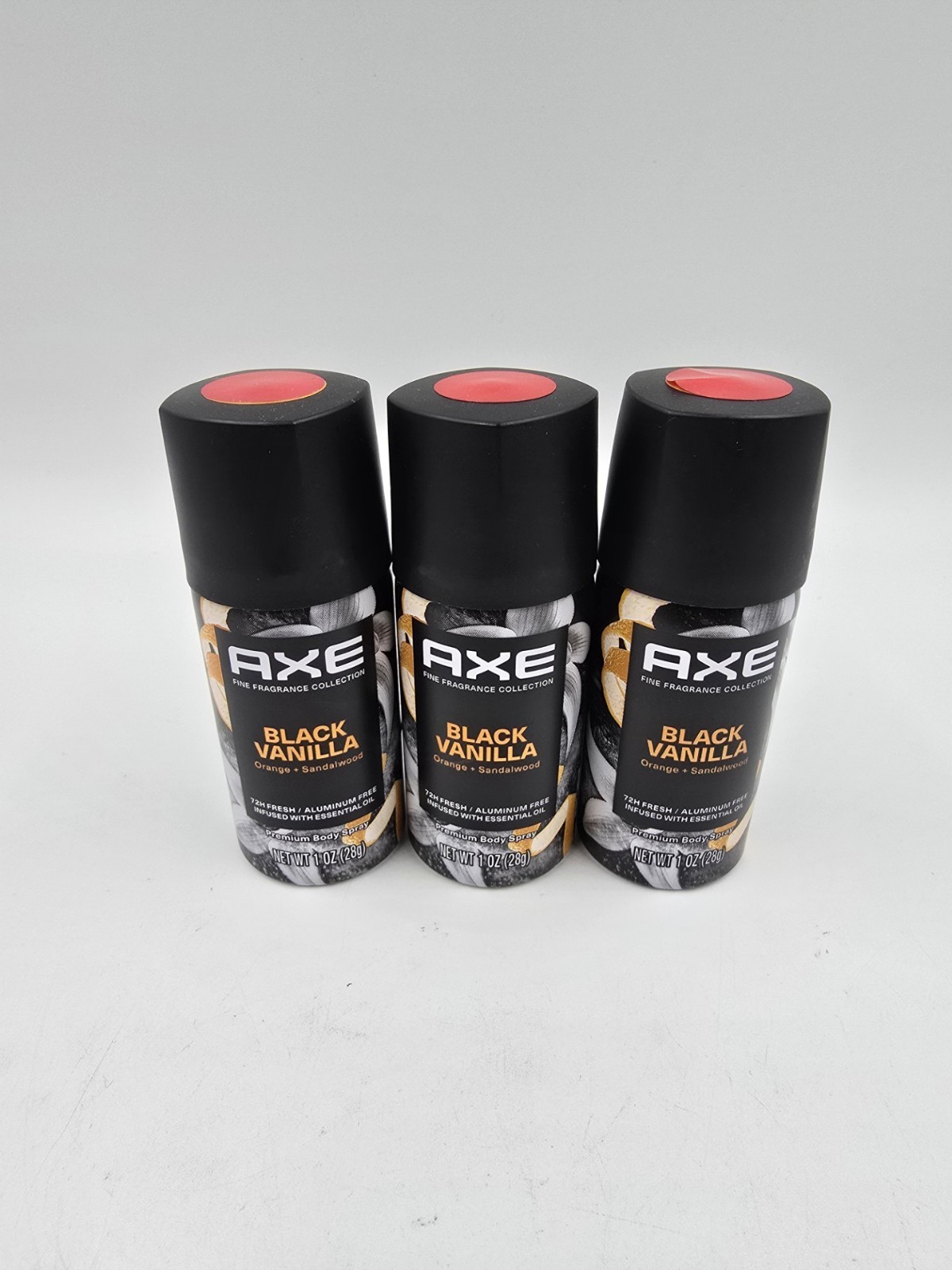 Axe Black Vanilla Premium Body Spray Aluminum Free 1 Oz - Lot of 3