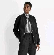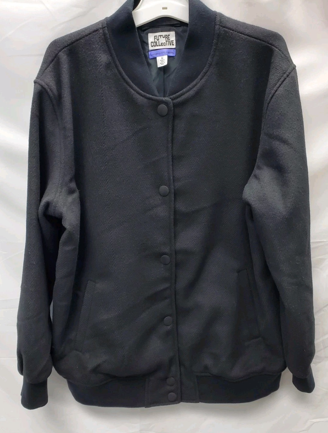 Future Collective Women's Long Sleeve Button Down Bomber Jacket Medium Black