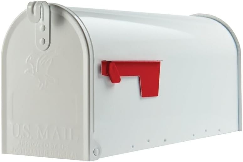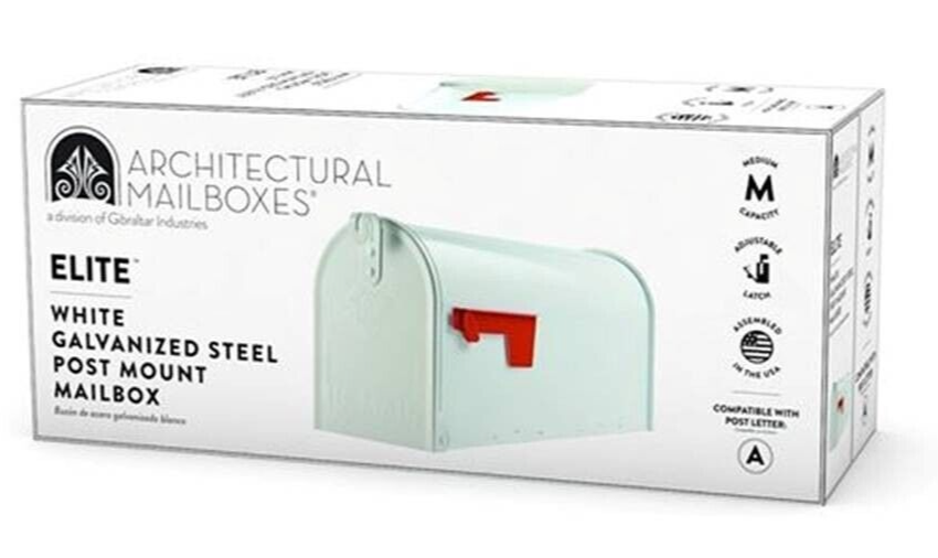 The Gibraltar E1100WAM Elite mailbox is a heavy-duty, fully assembled residential mailbox constructed from corrosion-resistant galvanized steel with a durable white powder-coated finish for long-lasting protection against weather, rust, and UV degradation. Designed to meet USPS standards, it offers 800 cubic inches of secure storage capacity for daily mail and small packages. The reinforced door features an adjustable latch for a tighter, more secure seal, preventing unauthorized access and weather intrusion. A dedicated space on the door allows for easy installation of address numbers, while pre-drilled holes support flexible side- or bottom-mounting to compatible posts. Includes a durable aluminum outgoing mail flag for convenient notification of outgoing mail.