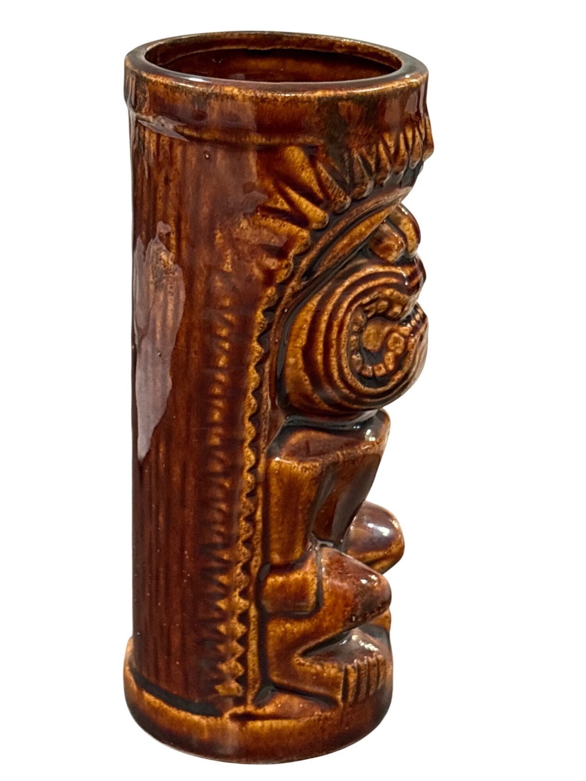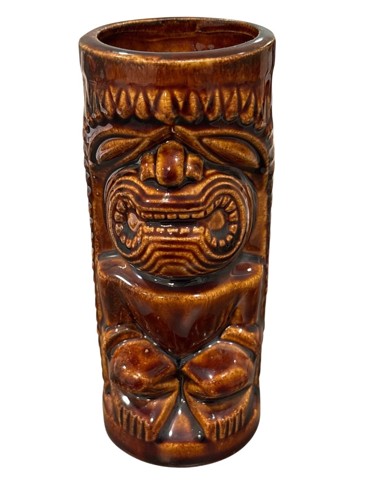 Vintage Hawaiian Tiki Brown Ceramic Mug 7" Tall Collectible Barware Decor