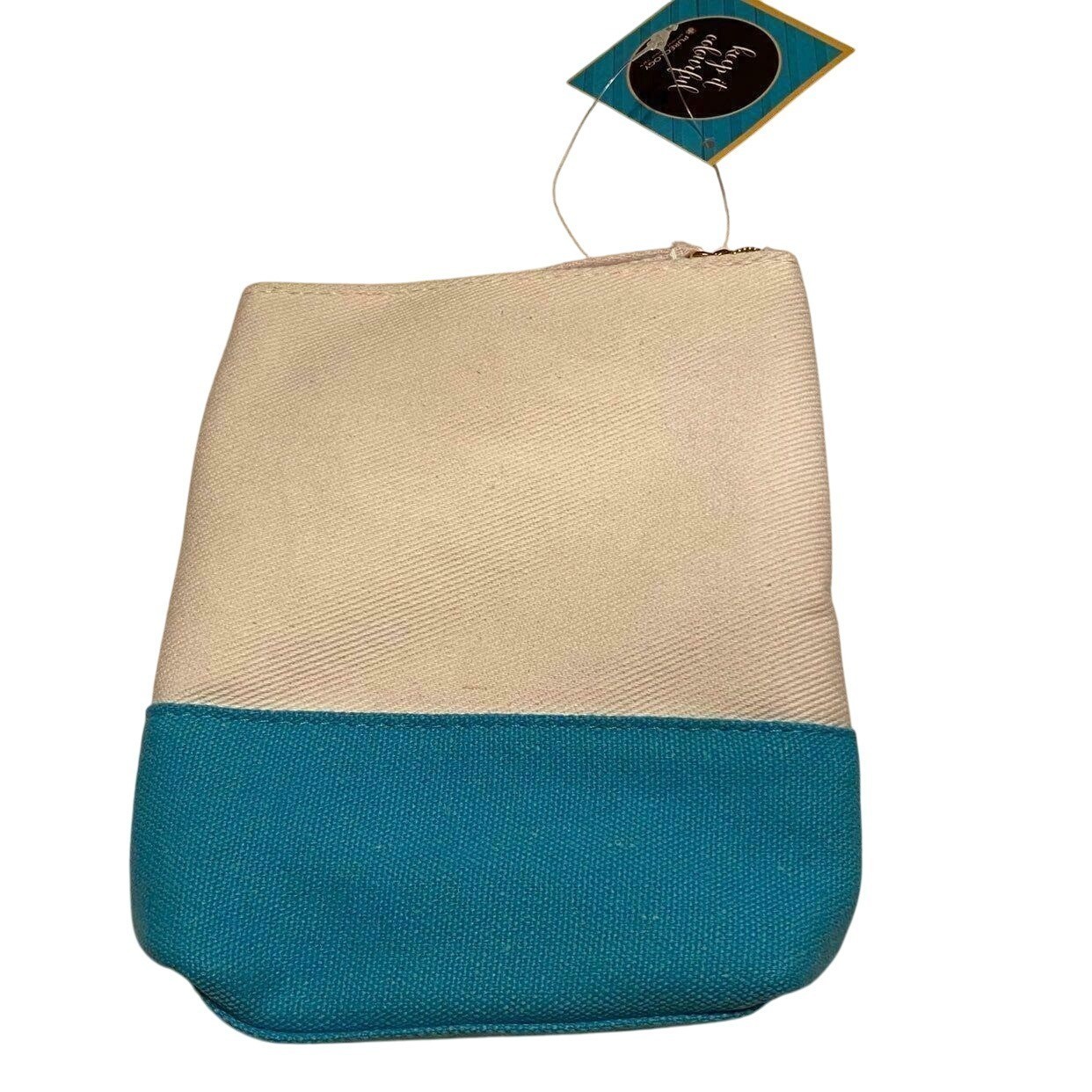 Be Strong Kick Brass Canvas Cosmetic Bag With Zipper Closure - Blue & White