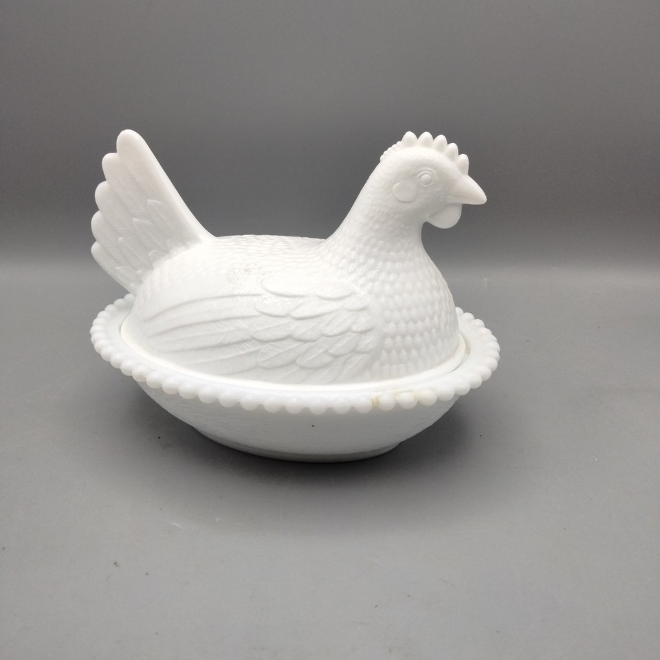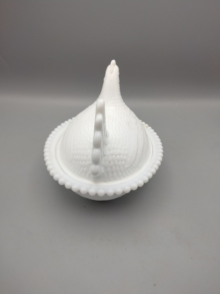 Indiana Glass Satin, Acid Etched, Milk Glass Hen On Nest Candy Dish