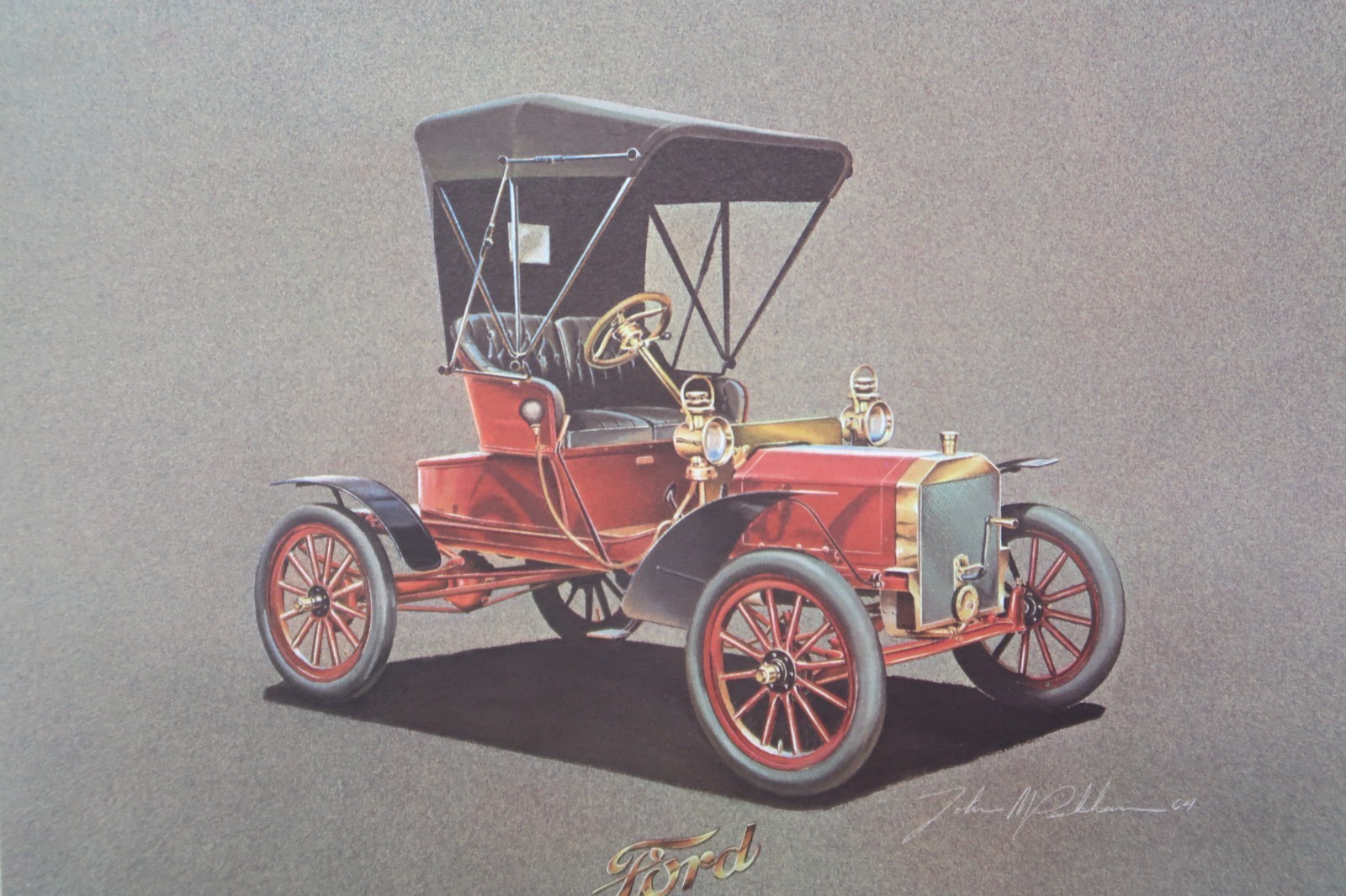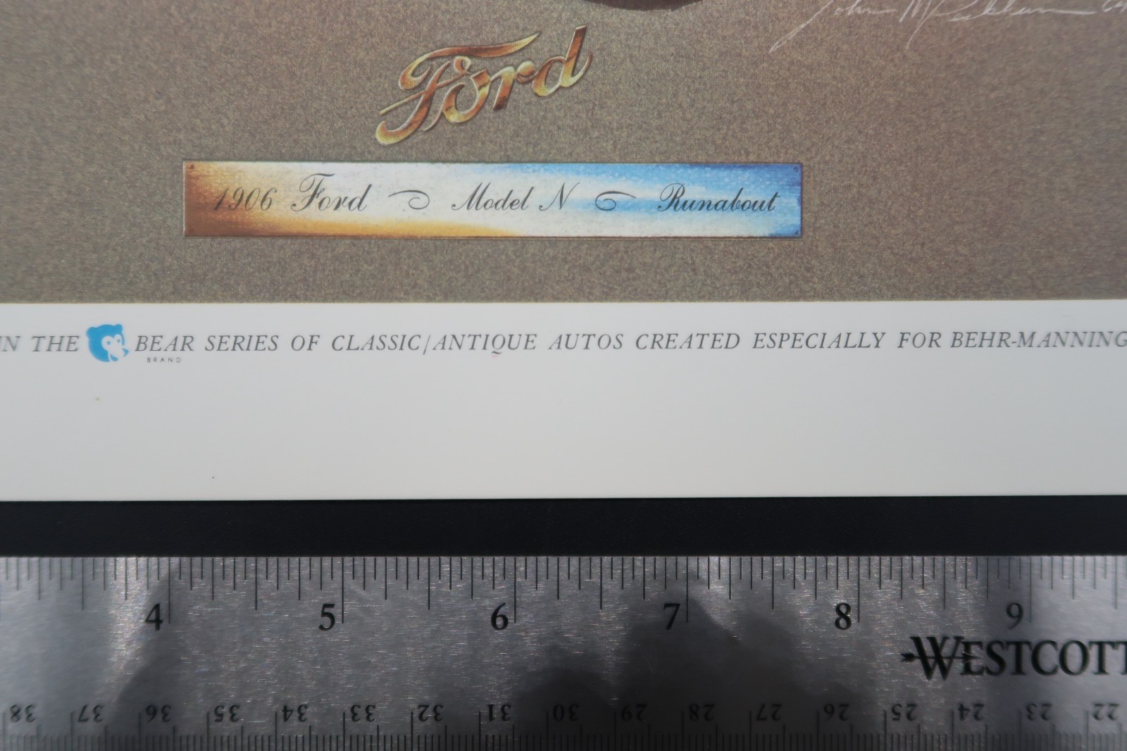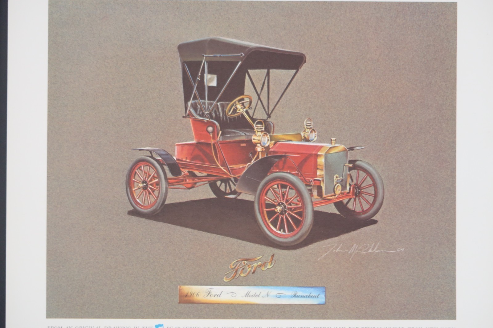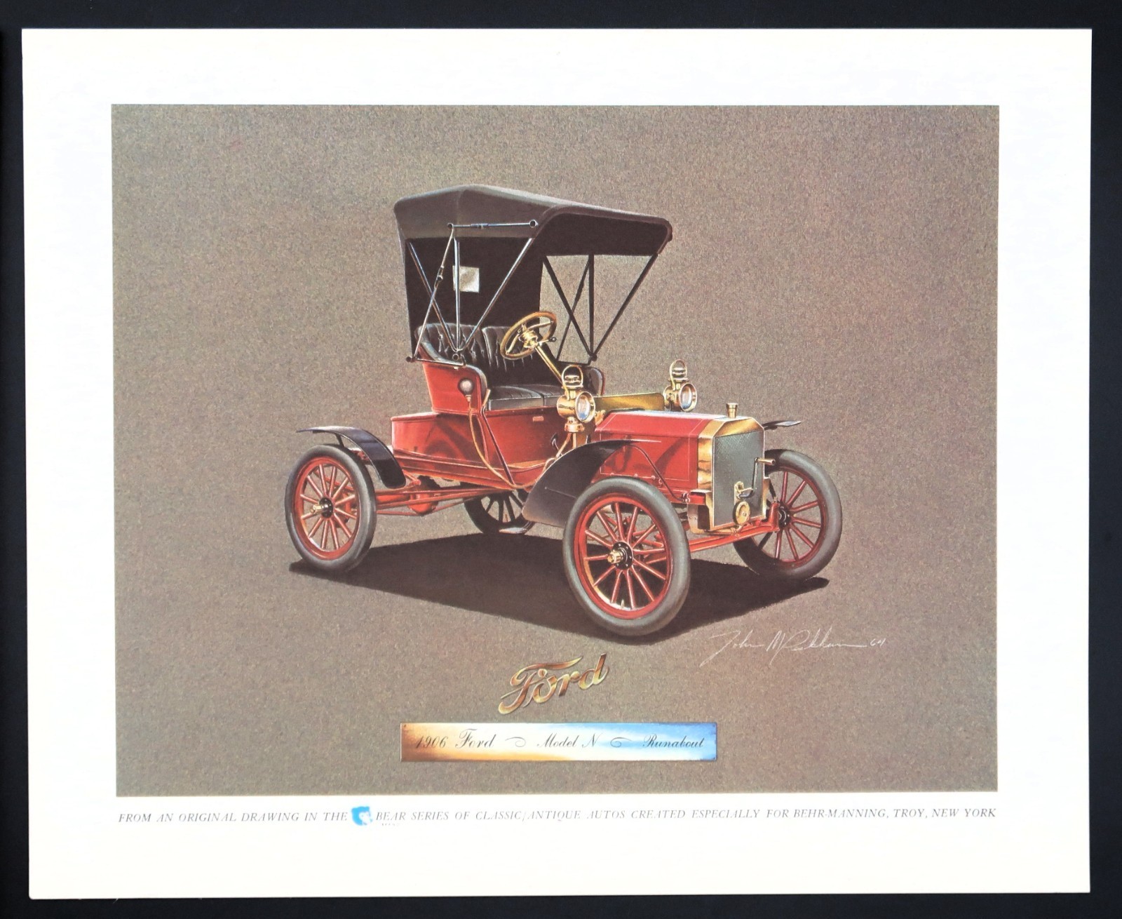 Vtg Bear Series Print Classic Autos Behr-Manning Troy NY 1906 Ford Runabout