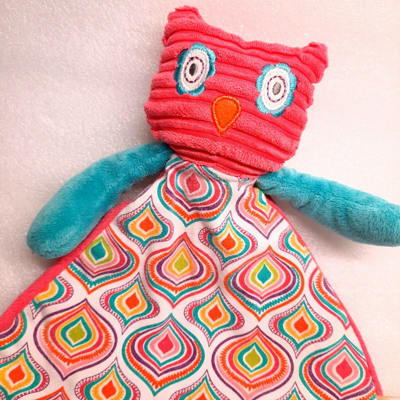 Maison Chic Owl Baby Lovey toy plush hot pink blue Security Blanket soft blue