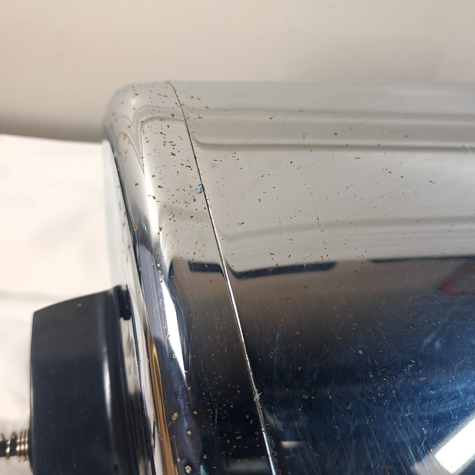Works! Insulation material around the plug is partially broken as shown. Some pitting/rust/scratches/wear as shown. Includes removable pan and tray as shown. See pics.