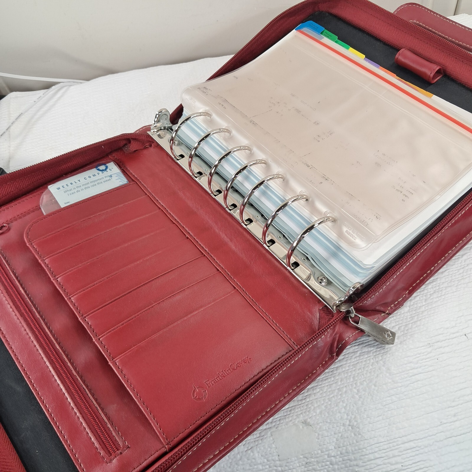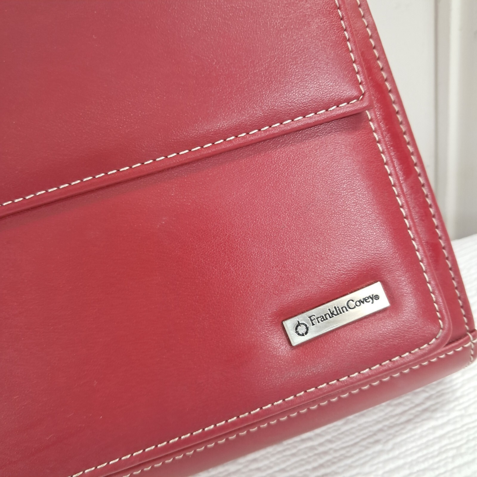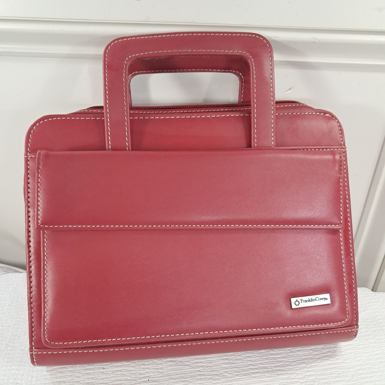 Franklin Covey Red Zip Planner Binder Briefcase Handles 7 ring organizer inserts