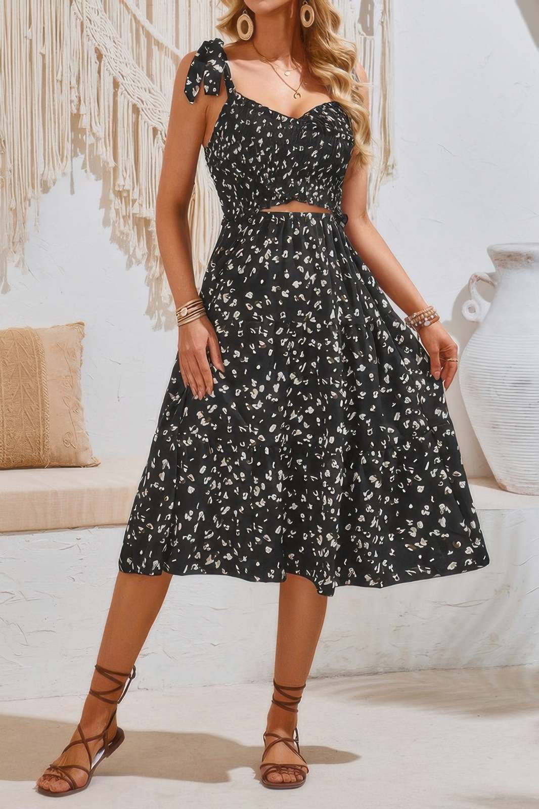 Square Neck Leopard Cut Out Elastic Waist Dress