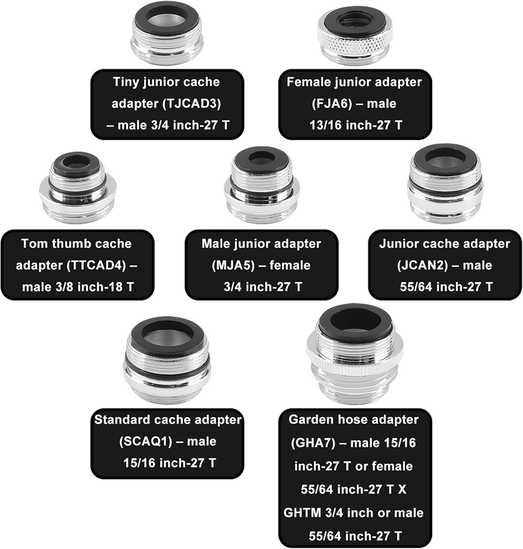 ??What is the Size?: The detail size of sink faucet adapter include male 15/16 inch-27 T, male 55/64 inch-27 T, male 3/4 inch-27 T, male 3/8 inch-18 T, female 3/4 inch-27 T, male 13/16 inch-27 T, male 15/16 inch-27 T or female 55/64 inch-27 T X GHTM 3/4 inch or Male 55/64 inch-27 T