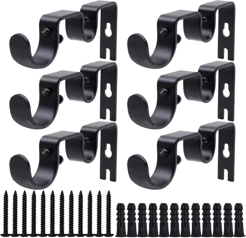 Double Curtain Rod Bracket 6 Pack Metal Curtain Rod Holders for Wall Sturdy Curt