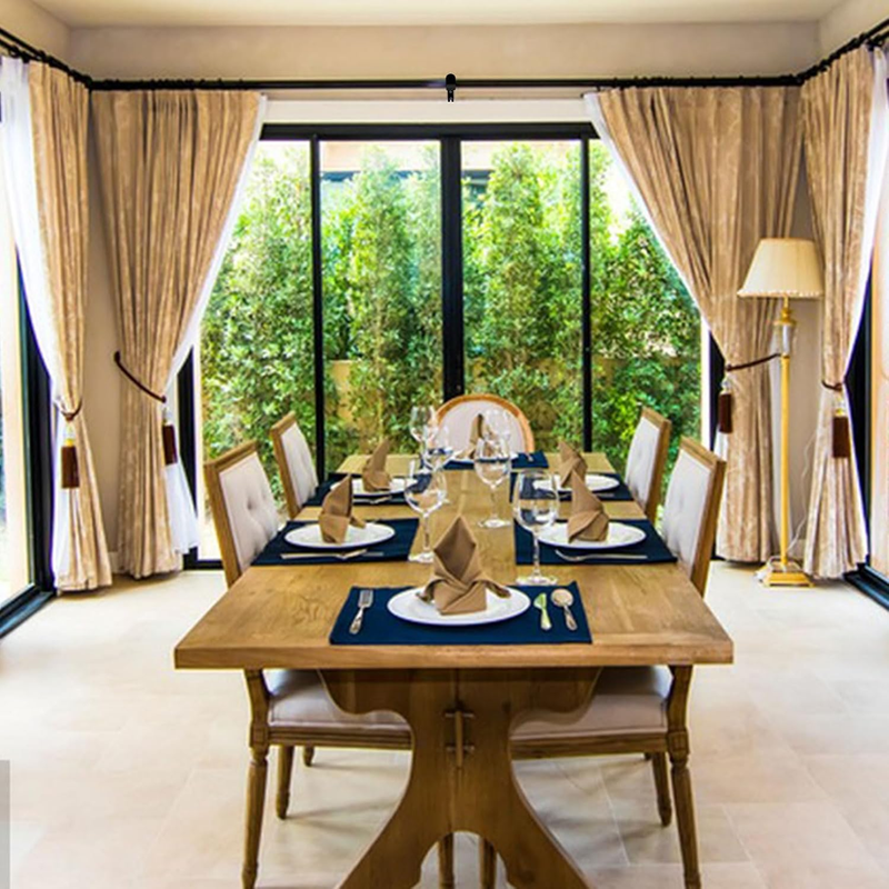 Simple classic style double curtain rod holder not only supports your curtains and curtain rods well, but also matches perfectly with your other room set.