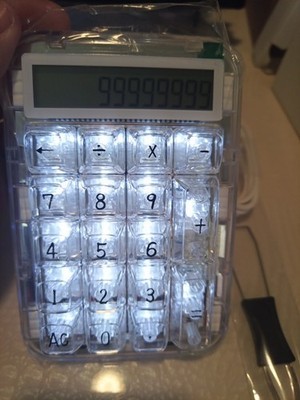 Retro Clear Calculator Transparent Buttons & Back Battery Powered Rechargeable