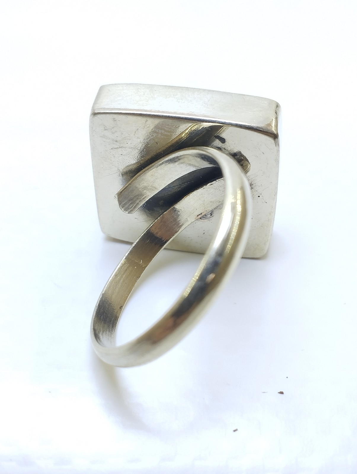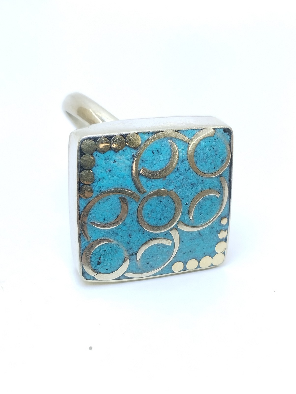Beautiful vintage-style Tuareg ring handcrafted from brass and inlaid with turquoise mosaic.