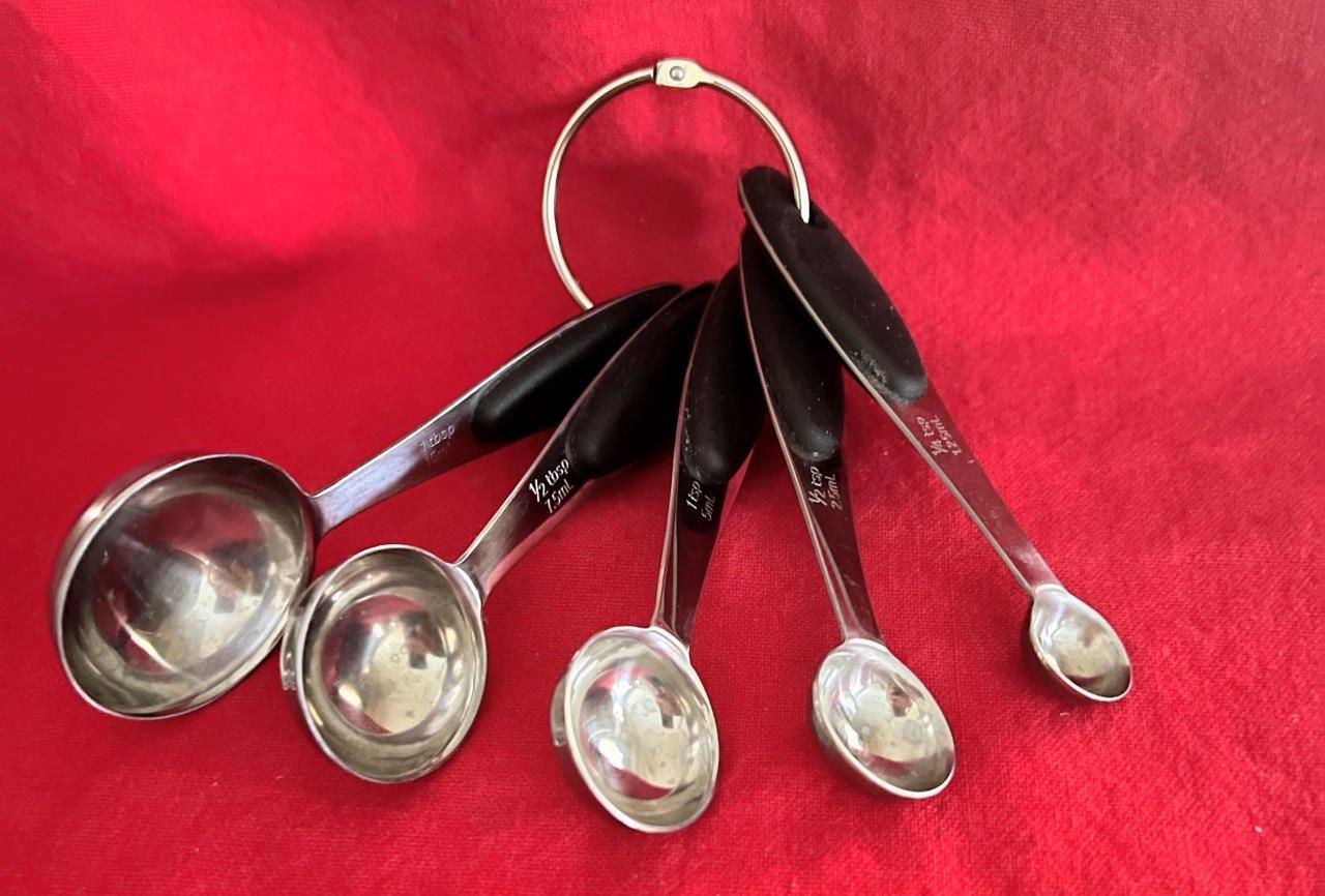 5 Stainless Measure Spoons w Soft Grip Handles Tbs 1/2 Tbs 1 tsp 1/2 tsp 1/4 tsp