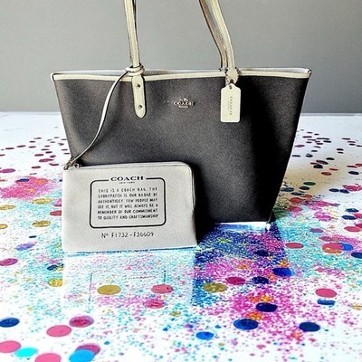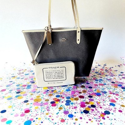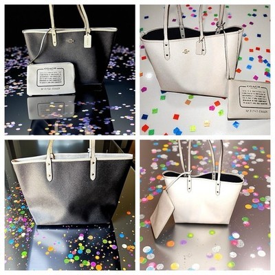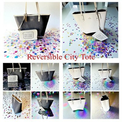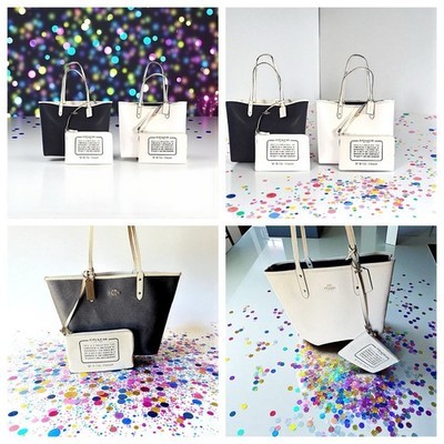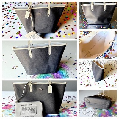 COACH Reversible City Tote in Coated Canvas (Black/White/Gold) Two-Tone Black and White Tote With Pouch New With Tags and Dust Bag