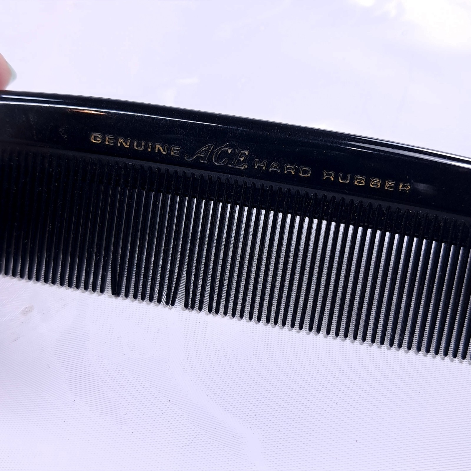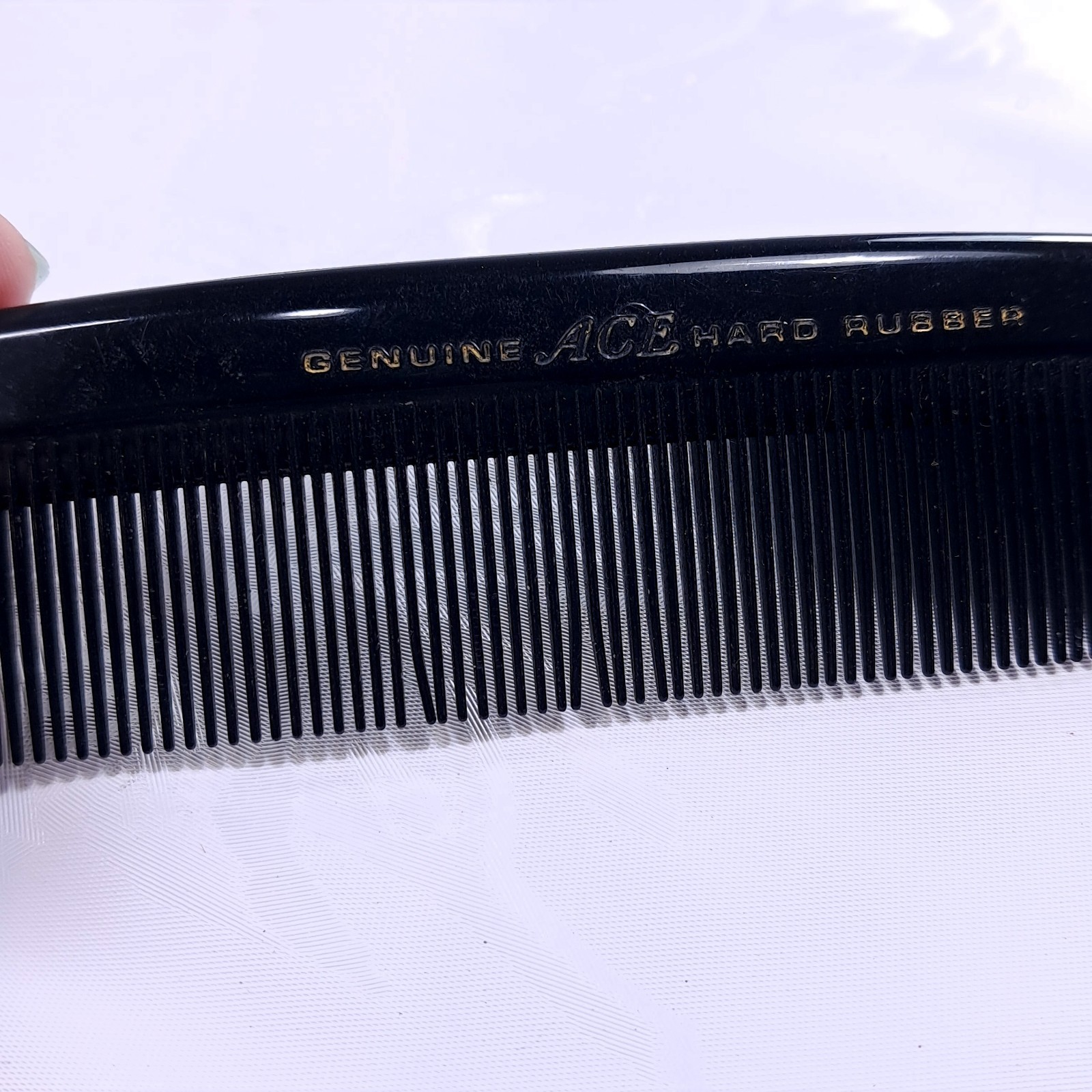 Vintage Genuine Ace Hard Rubber Pocket Comb 5" Black Made in USA hair comb