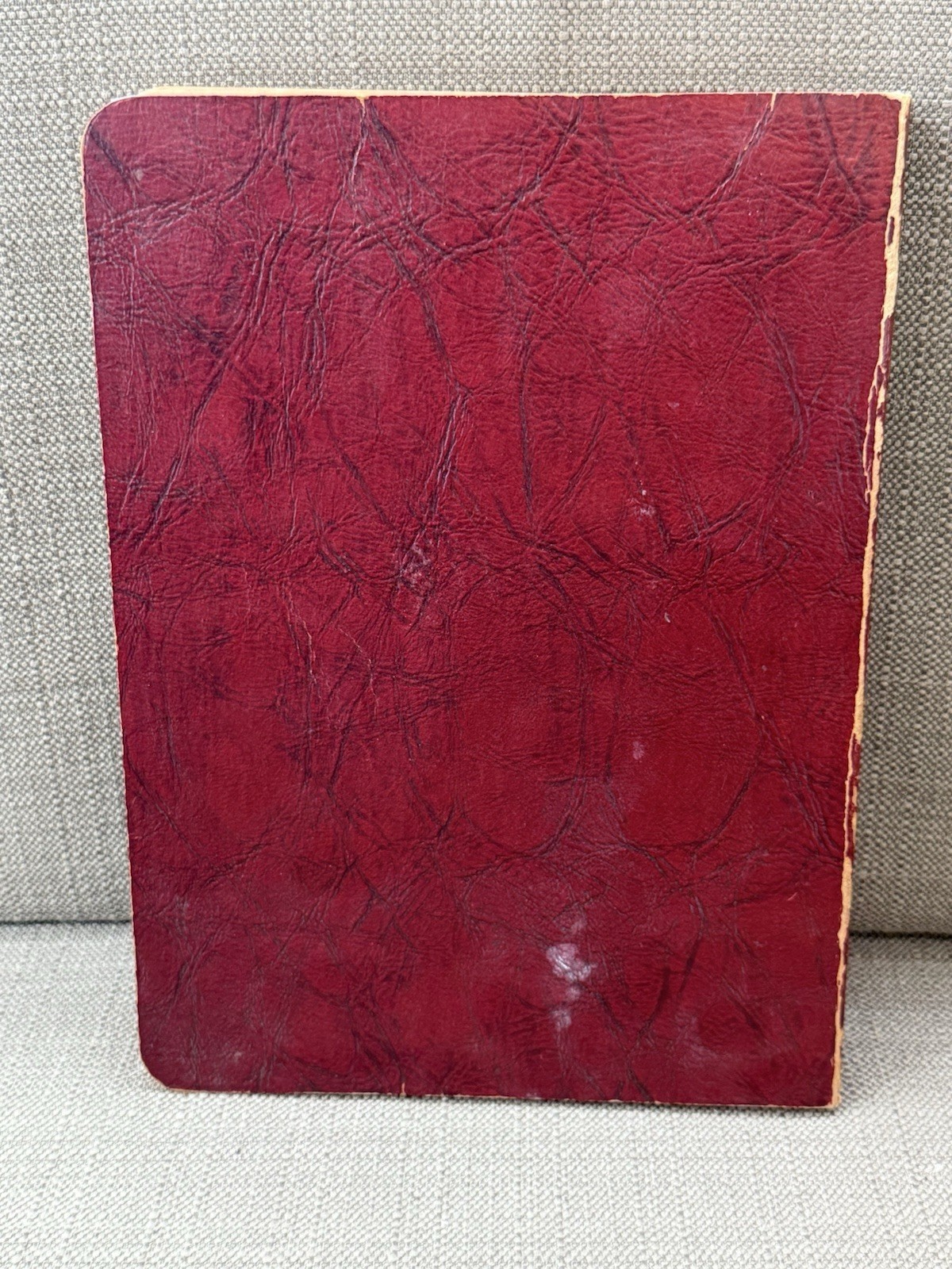 Bound in a deep red faux-leather cover with gilt title embossing. Shows wear along spine and edges, and has a name written inside, but overall remains in great vintage condition for its age.