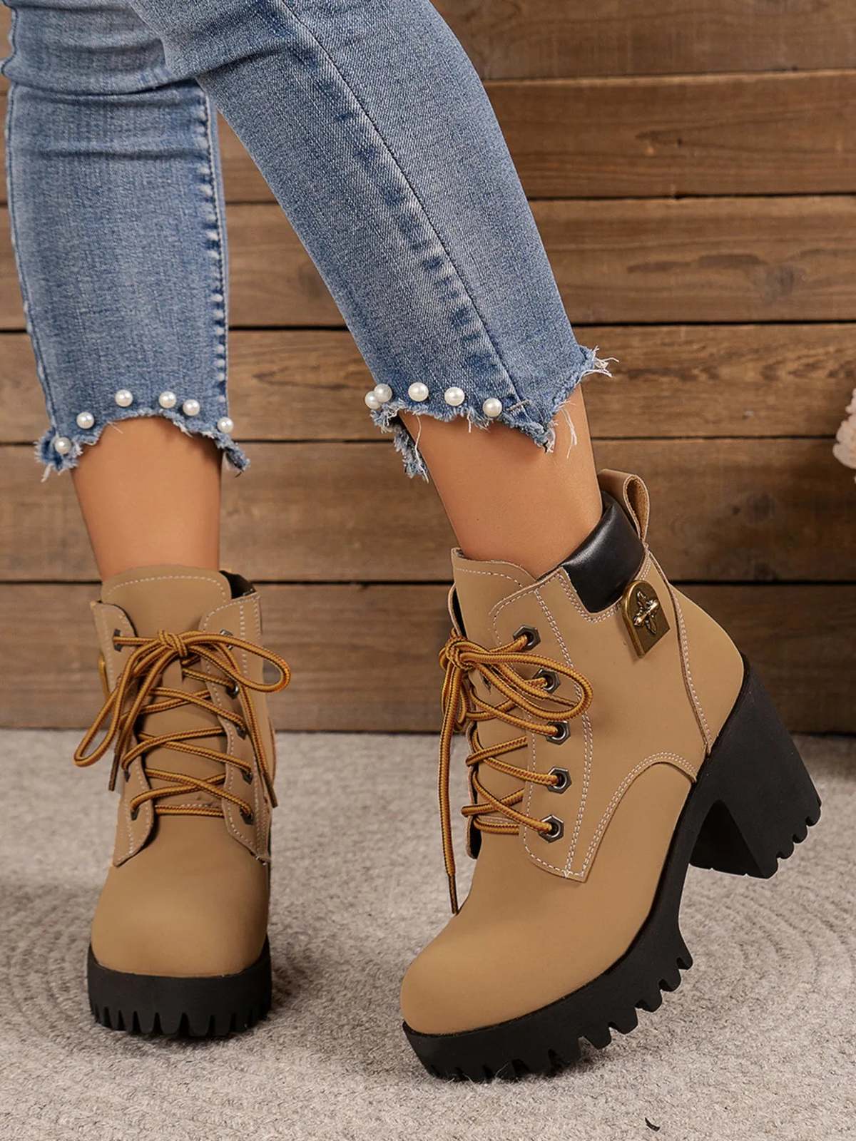 Lace Up Block Heel Boots