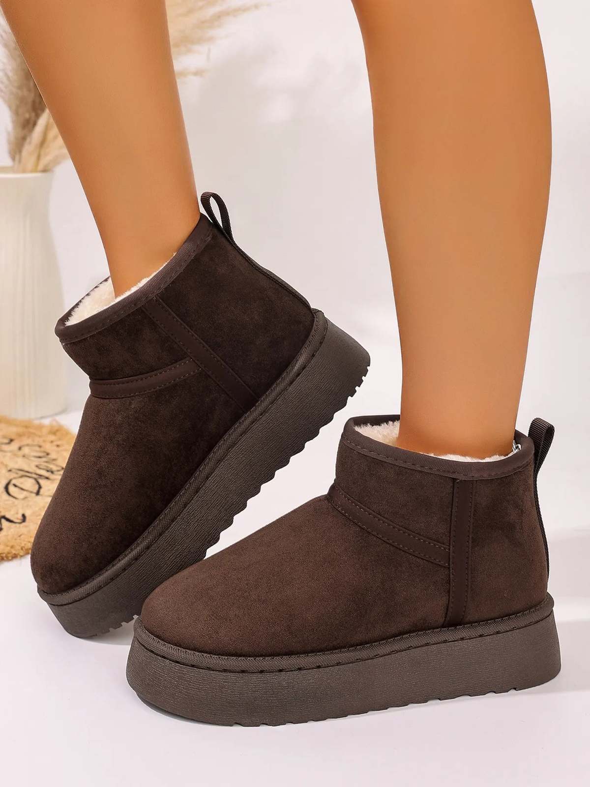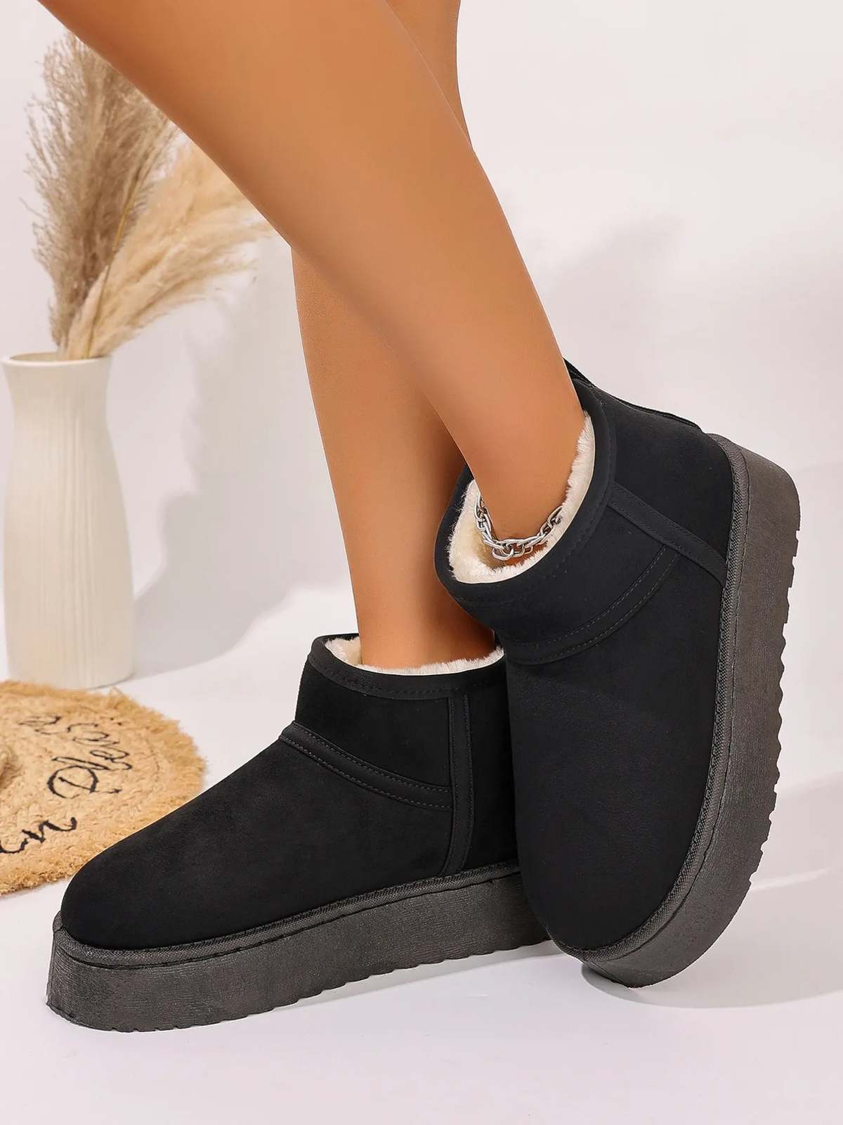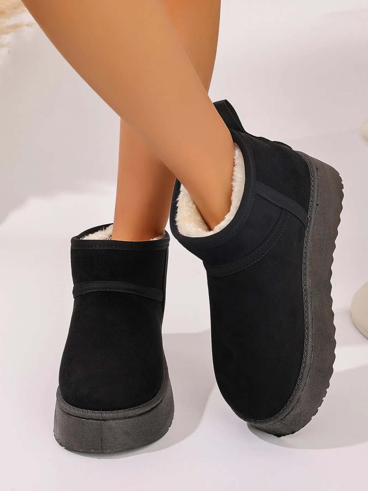 Platform Winter Ankle Boots with Cozy Fleece Lining