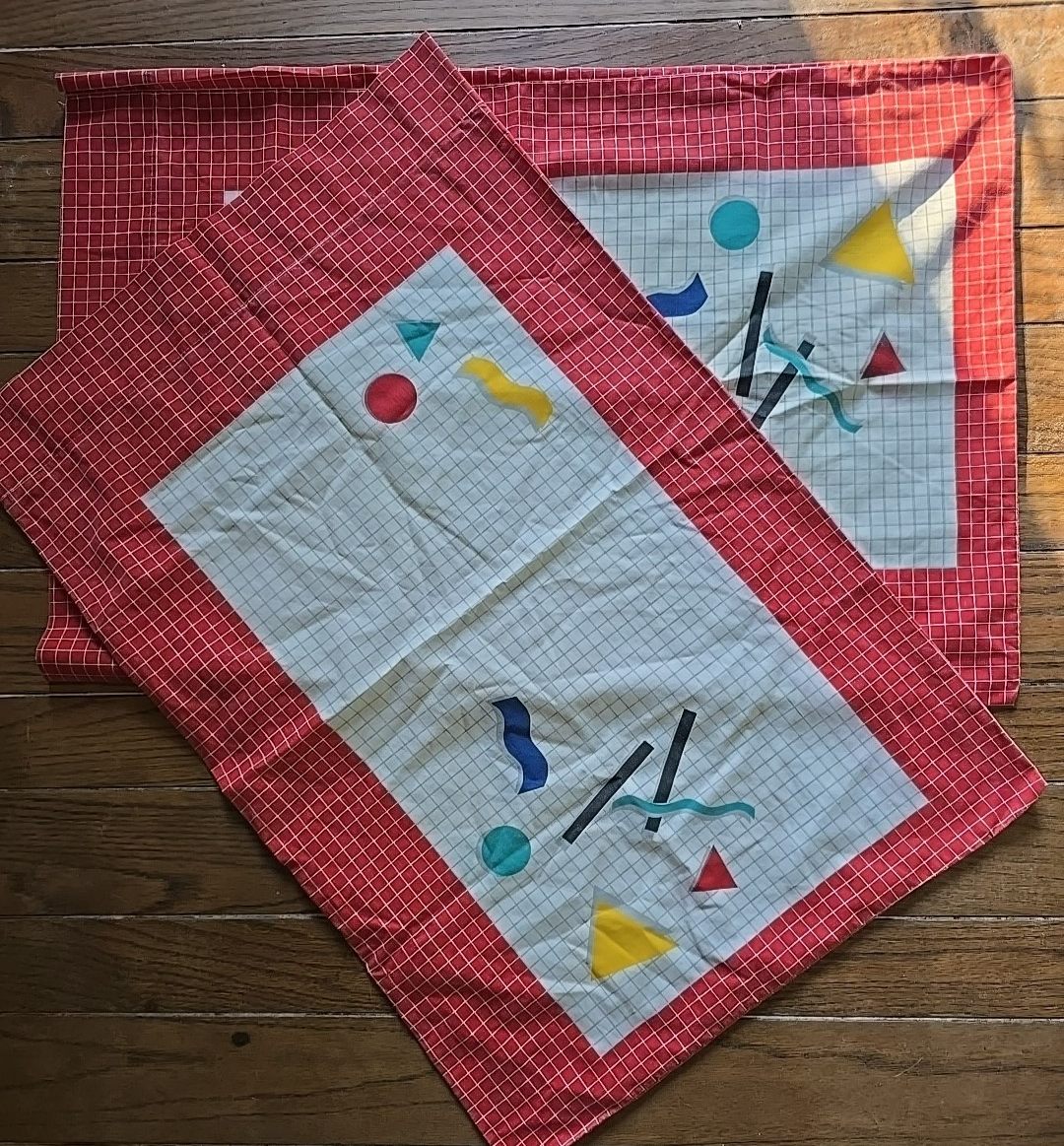 Vtg cannon pillow case geometic grid 80s postmodern DJ Tanner Full House