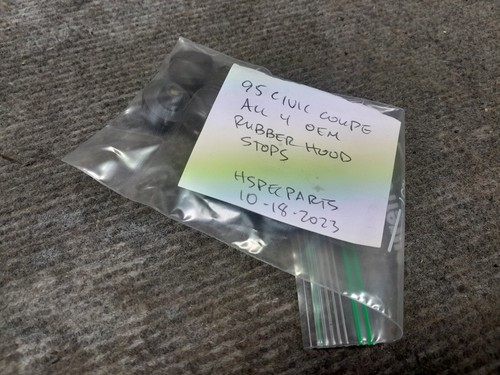 GOOD USED CONDITION. 4 PCS - OEM RUBBER HOOD STOPS FROM A 1995 CIVIC COUPE. FITS 92-95 CIVIC AND 94-01 INTEGRA. SHIPS USPS WITHIN 1 BUSINESS DAY OF PAYMENT.
