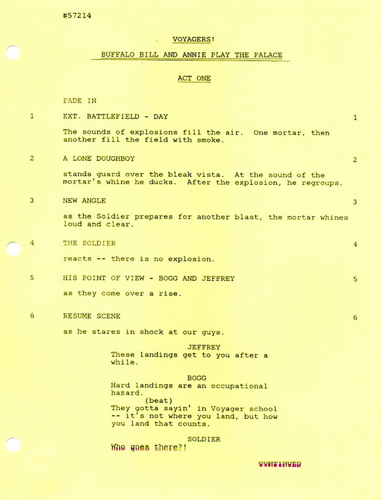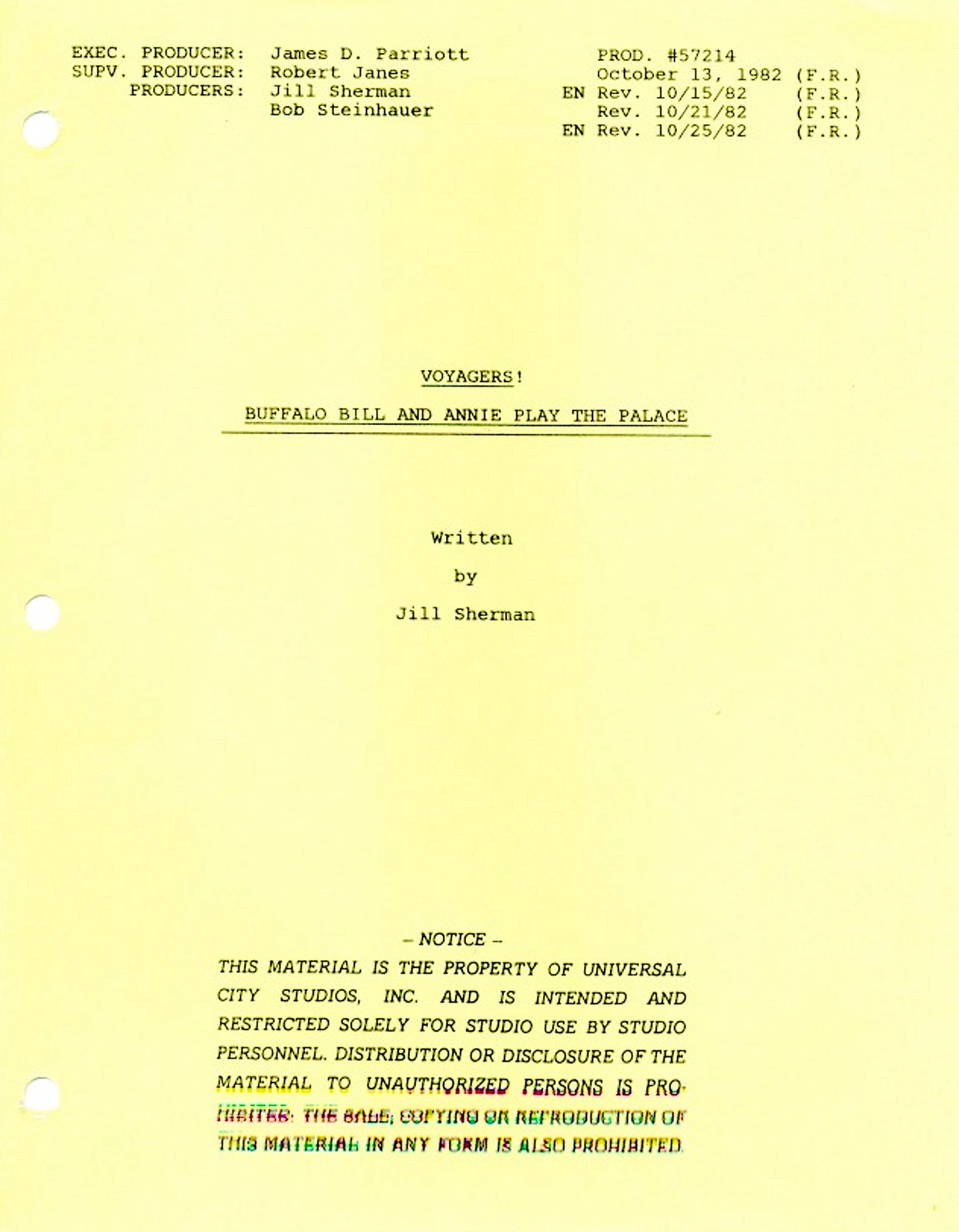 1982's VOYAGERS!: BUFFALO BILL & ANNIE PLAY THE PALACE original TV series script