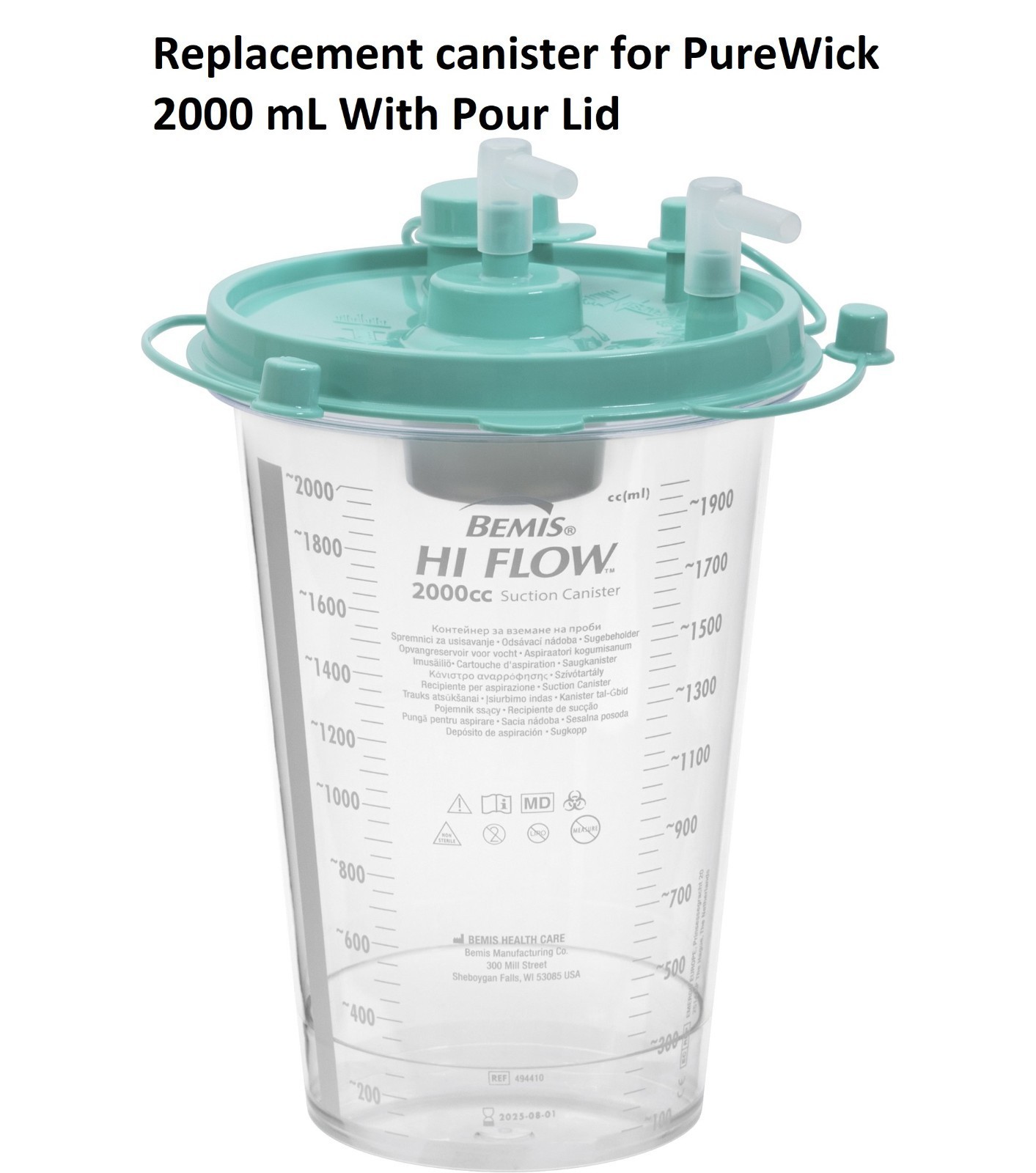 NOTE: This listing is Only for Hi-Flow Rigid Suction Canister 2000 mL with Lid, (PureWick Machine and Tubing are NOT INCLUDED)