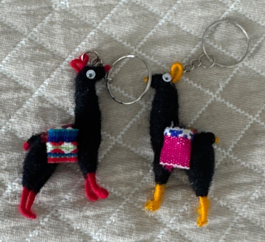 Lot of Two Peruvian Black Handmade Llama/Alpaca Keychains 2.5" Tall NWOT