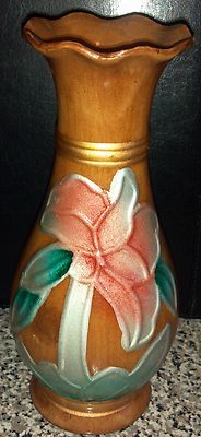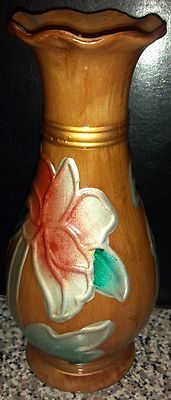 Decorative Floral Glass Wood-Like Flower Vase Raised Textured Painting
