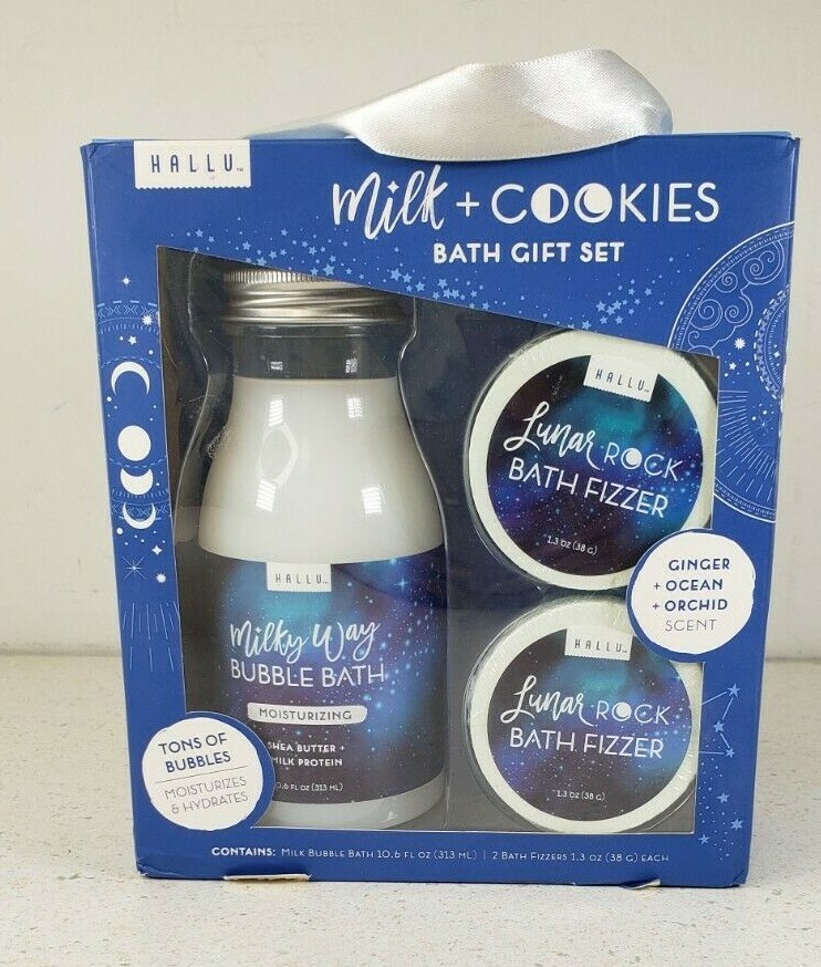Hallu Milk Cookies Bath Set Bubble Bath Bath Fizzer Ginger Ocean Orchid Scent New Sealed
