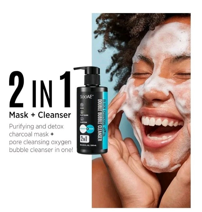 (1) Soo'AE Black Charcoal Double Bubble Cleanser + Mask 2 n 1 Purifying Skincare