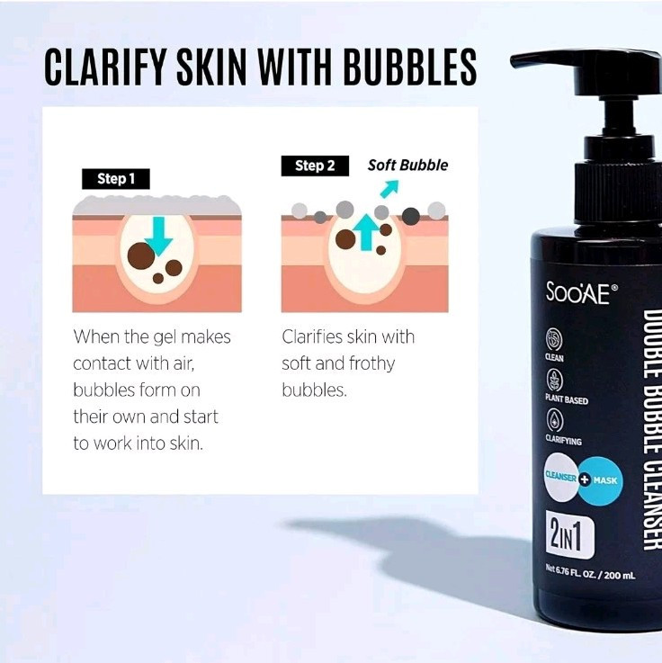 Now you can with Soo?AE Black Charcoal Double Bubble Cleanser. It?s equal parts fun to use and good for your skin by providing the benefits of a cleanser + mask in one convenient product.