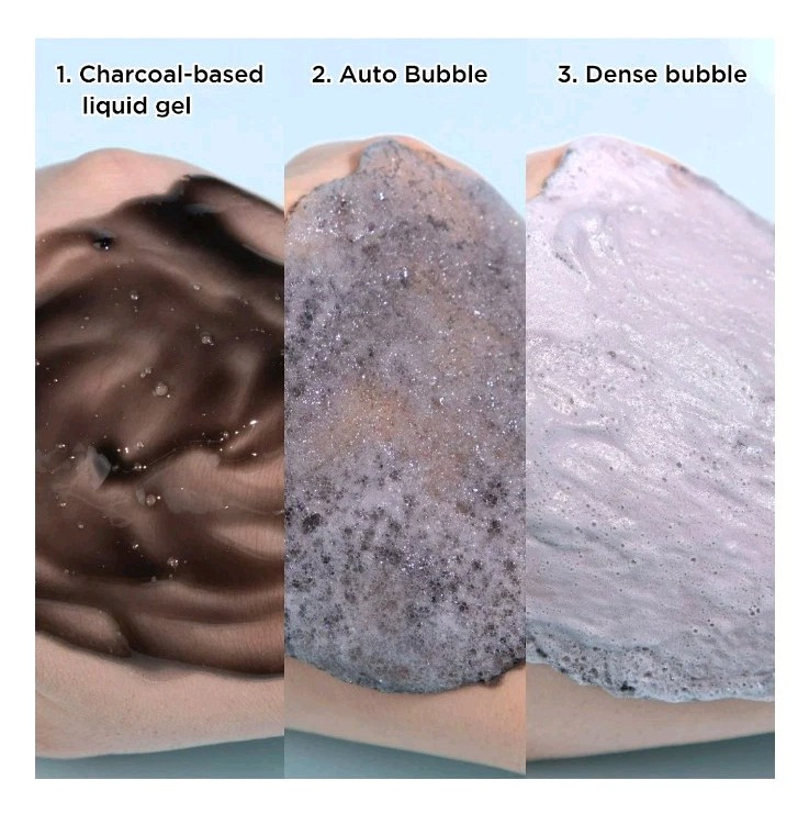 2 stages of Soft-Bubble - use as Bubble mask, you can wash off, or start to massage, that the Fluffy bubble will be changed to Creamy bubble and work as purifying cleanser
