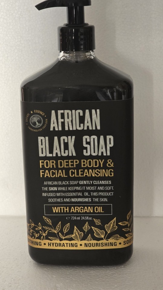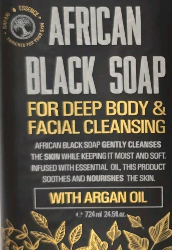 (1) AFRICAN BLACK SOAP FOR DEEP BODY FACIAL CLEANSING WITH ARGAN OIL 24.5 FL. OZ. BOTTLE