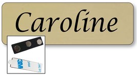 This listing is for a personalized name badge tag FOR A HALLOWEEN COSTUME FOR CAROLINE FROM 2 BROKE GIRLS. Your badge will arrive with a SUPER STRONG MAGNETIC fastener on the back. This badge is a RECTANGLE SHAPED WITH A GOLD BACKGROUND WITH ROUNDED CORNERS AND MEASURES APPROX. 1" x 3". This badge is printed in full color with a clear overlay that protects the print for a durable long-lasting badge. Your badge will ship within 1day free first class mail from AZ, upgrades in shipping speed are available at checkout if needed.