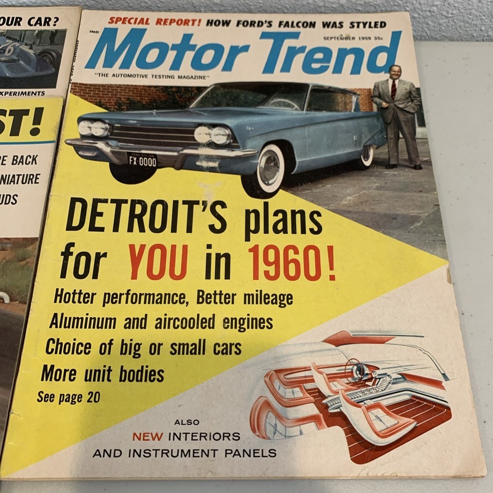 Lot of 5 Vintage Motor Trend Magazines – 1953 & 1959 – Classic Cars, Retro Ads