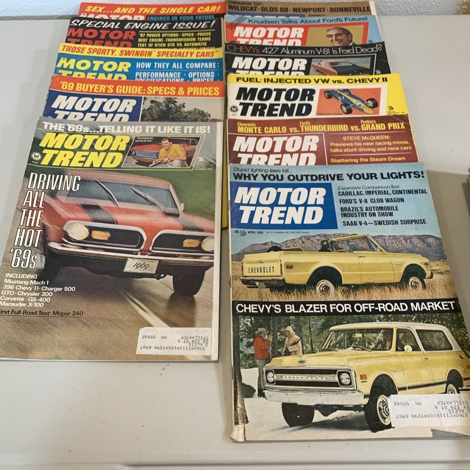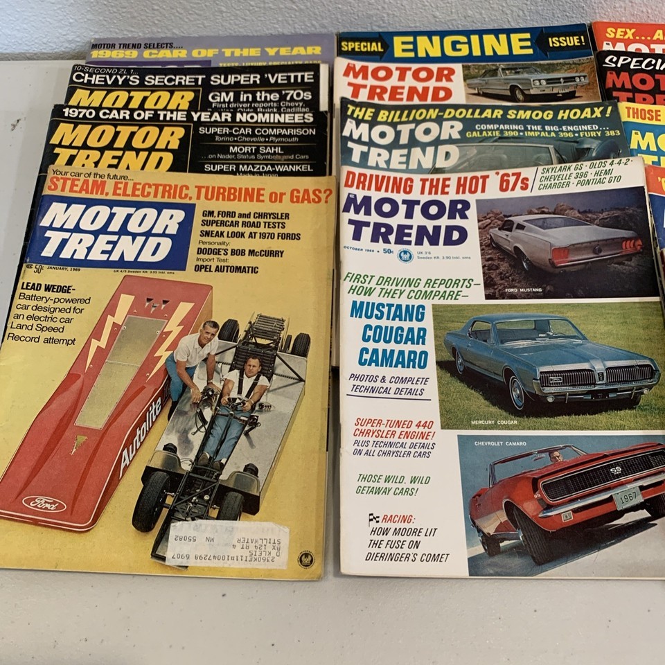Lot of 21 Vintage Motor Trend Magazines 1966–1969 – Muscle Cars • Classic Ads