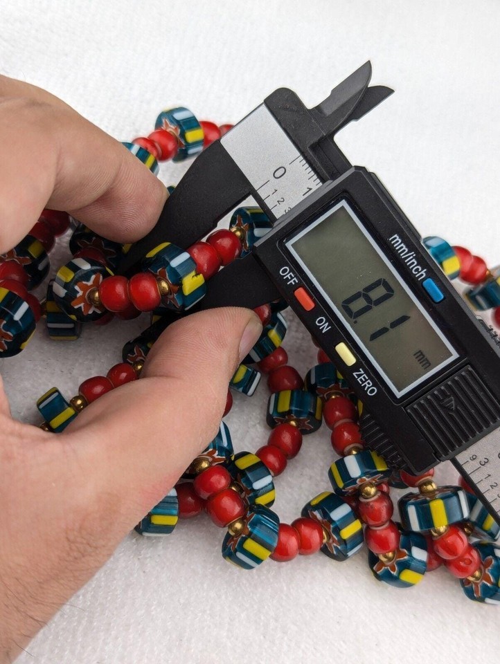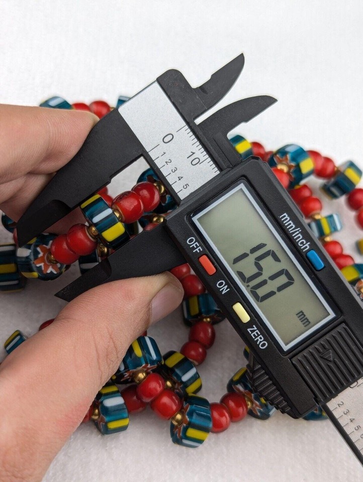 Le bracelet ancien perles chevron c?ur blanc rouge canneberge venitienne de 8 mm presente un style de perles d'inspiration africaine avec une pierre principale en verre rouge. Le bracelet est concu avec des accents en metal bronze et convient aux hommes et aux femmes. Originaire de Republique tcheque, ce bracelet presente un melange unique d'artisanat traditionnel et de design moderne, ce qui en fait un ajout distinctif a toute collection de bijoux.