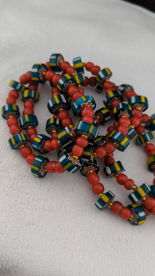 Bracelet ancien perles chevron coeur blanc rouge canneberge vénitienne de 8 mm